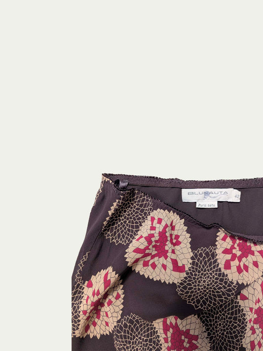 Blunauta Silk Patterned Brown Midi Skirt