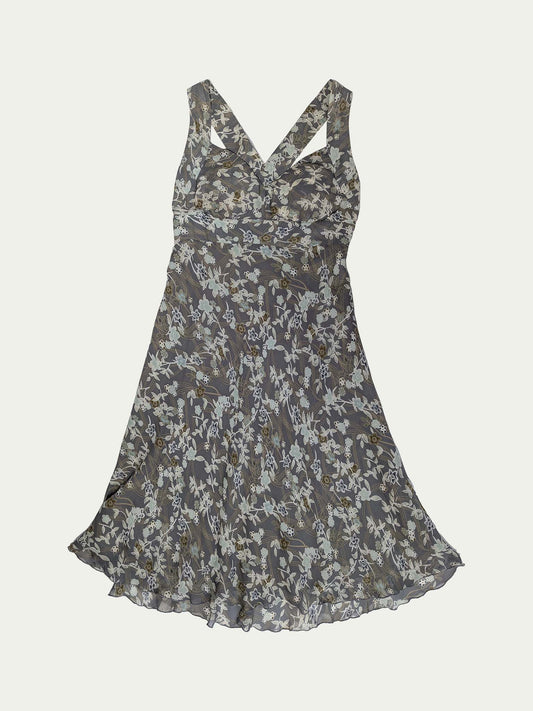 הַכַּרטִיסִים אָזלוּשמלת משי אפורה בצבע פריחה