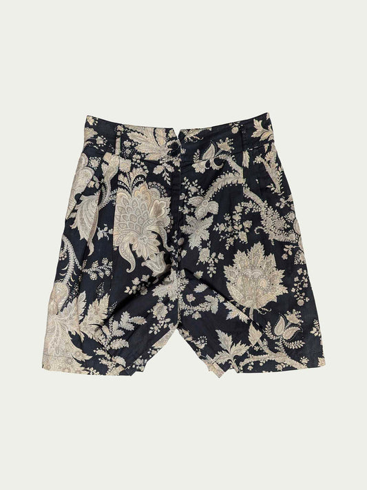 הַכַּרטִיסִים אָזלוּמכנסיים קצרים קפלים בצבע פייזלי שחור ובז' משנות ה-90