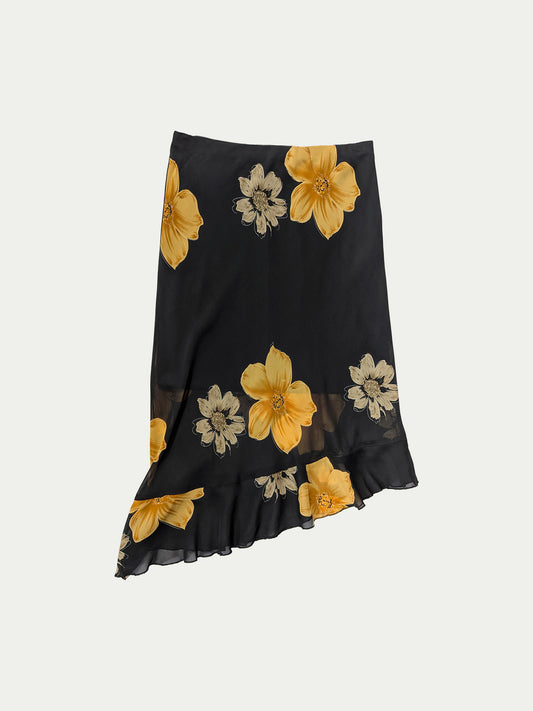 הַכַּרטִיסִים אָזלוּחצאית מידי שחורה פרחונית אסימטרית