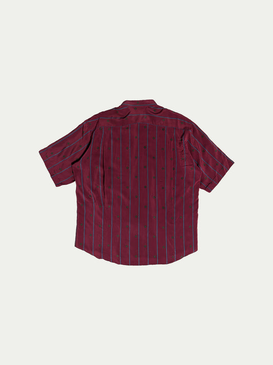 הַכַּרטִיסִים אָזלוּחולצת משי לגברים בדוגמא בורדו