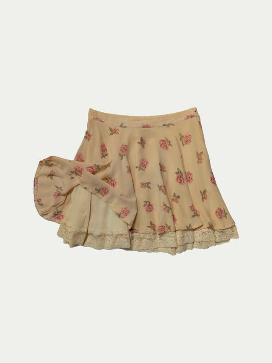 הַכַּרטִיסִים אָזלוּחצאית מיני ויסקוזה פרחונית בצבע קרם