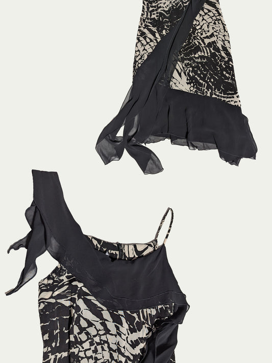שמלת מקסי שחורה פרחונית משנות ה-90 עם הדפס ויסקוזה