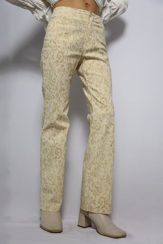 The 90s Ivory Patterned Straight-Leg Pants