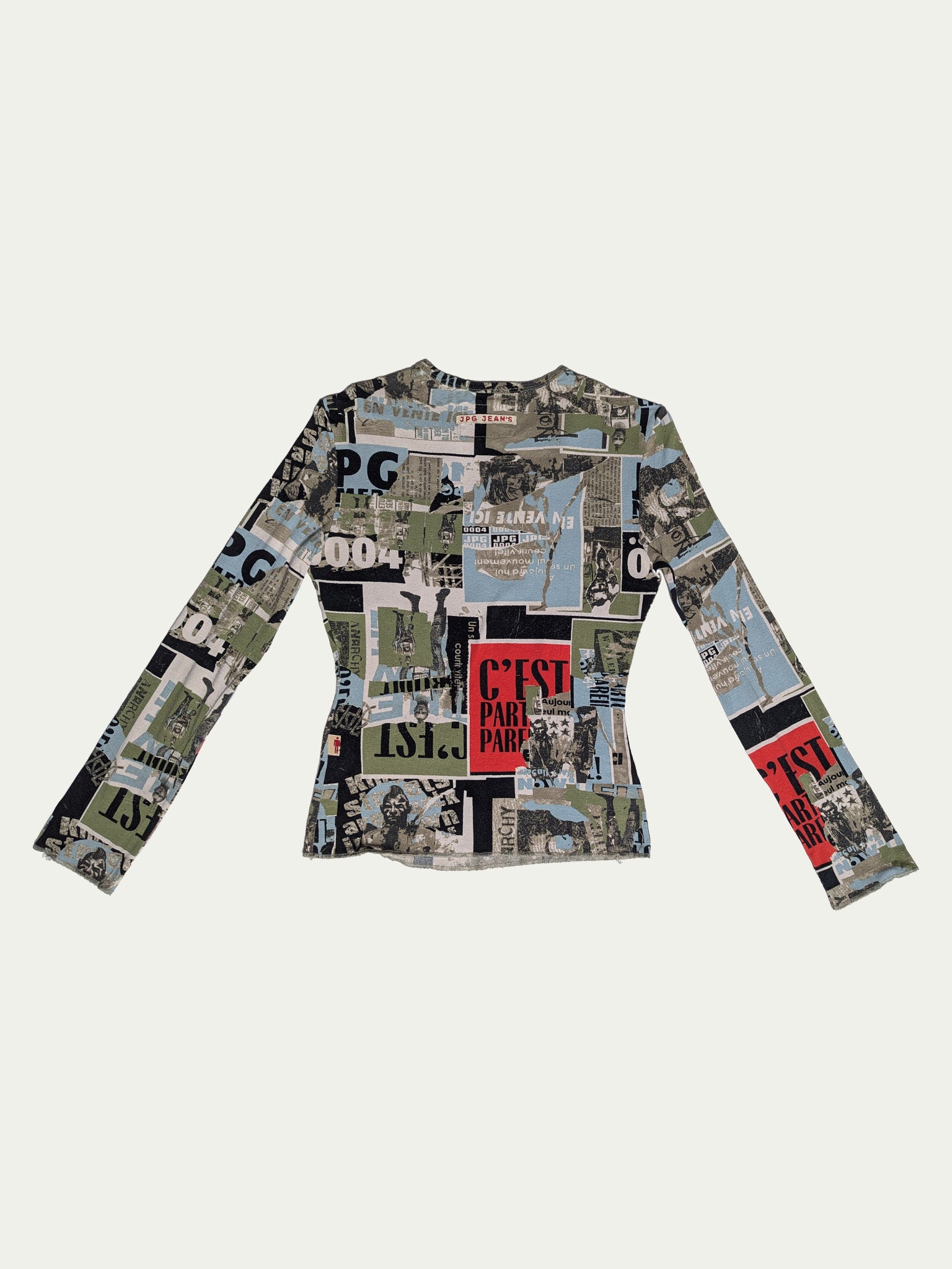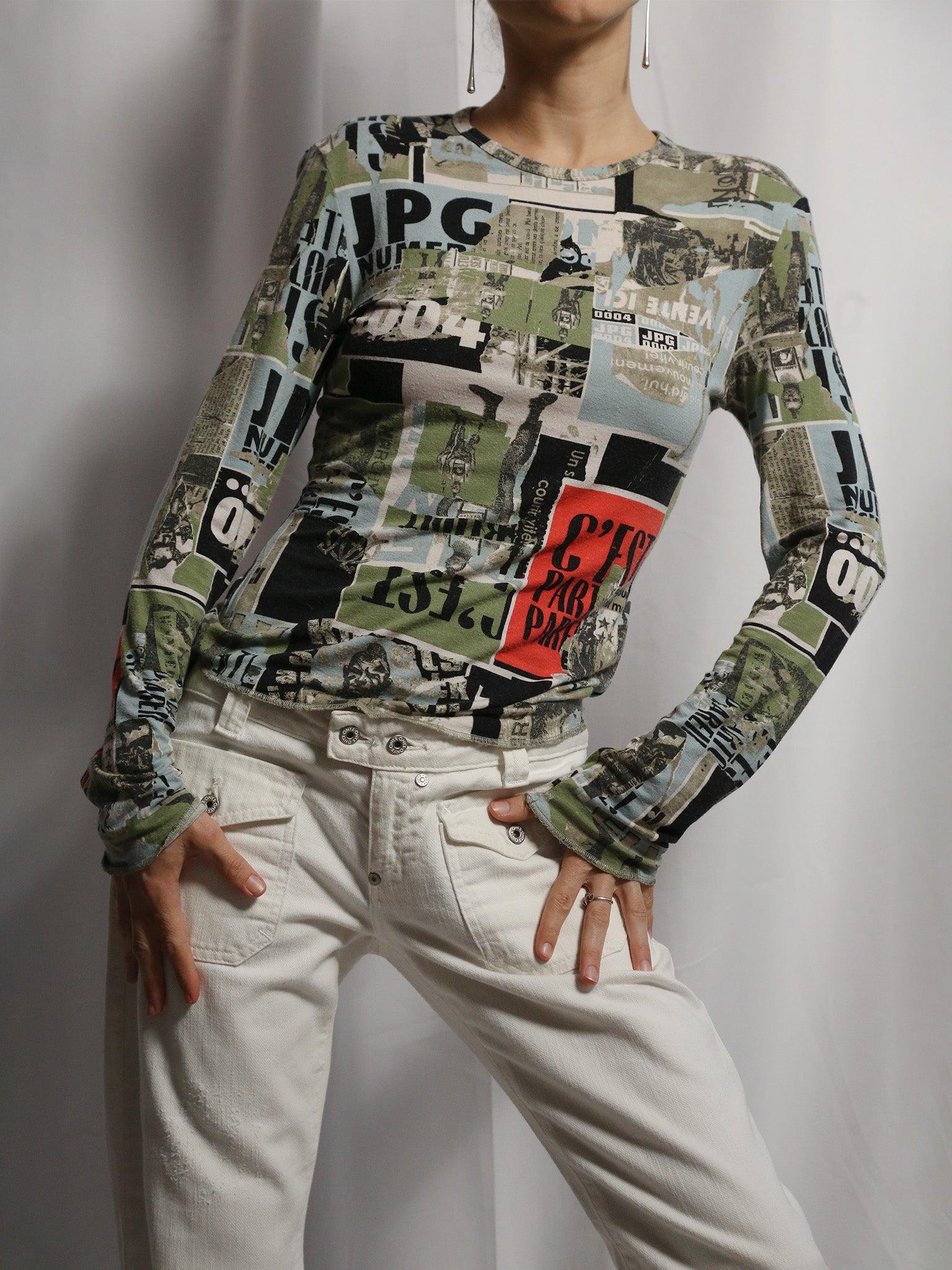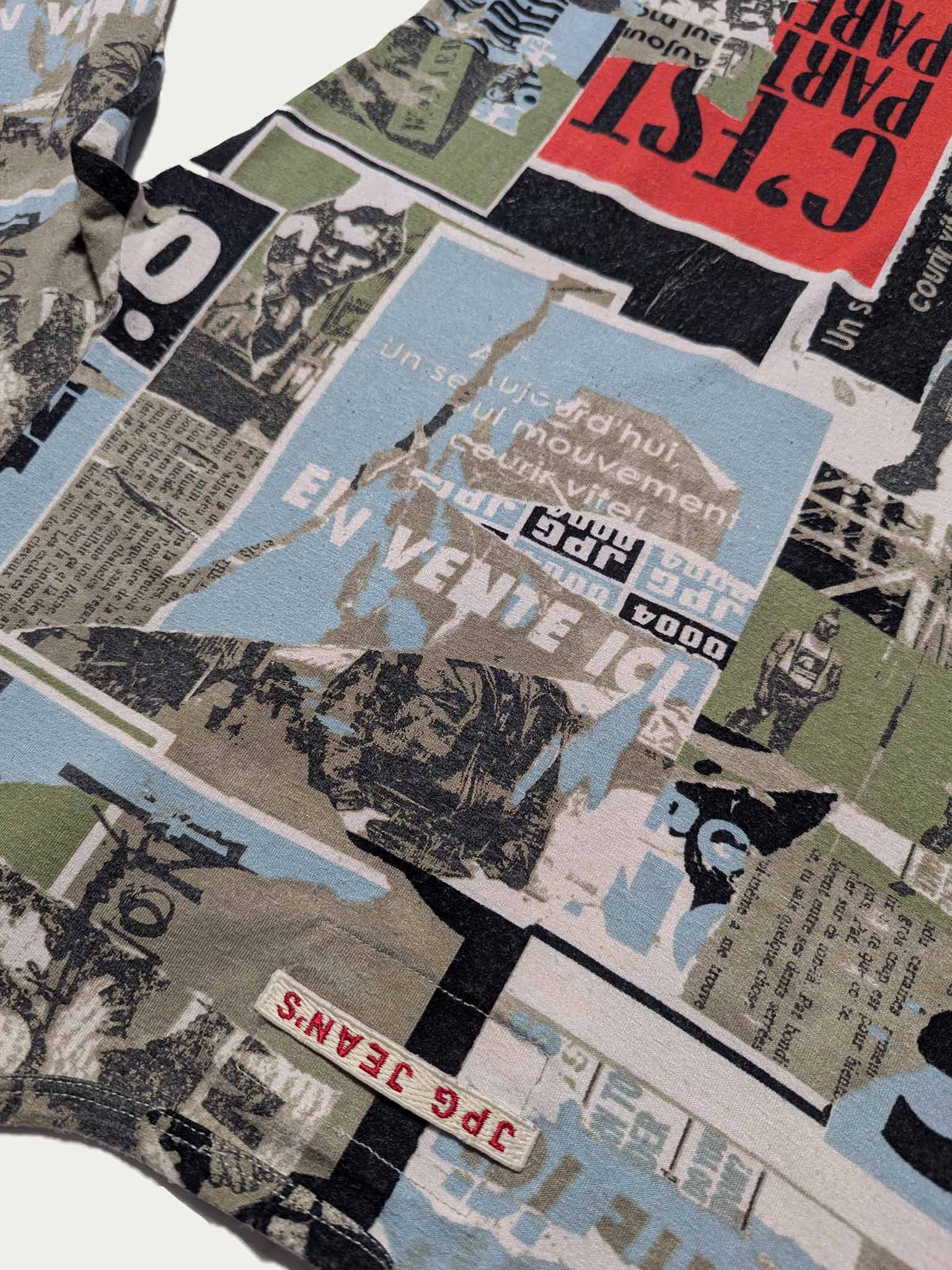 הטופ האייקוני של ז'אן פול גוטייה, משנת 1997 שלו קולקציית "להילחם בגזענות" , אשר שאב השראה מסוגיות חברתיות שעמדו בפני העולם באותה תקופה, תוך שימוש בסמלים קשורים שונים כגון שלטי אנרכיה, גרפיטי אנטי-גזעני וחלקי עיתונים.
