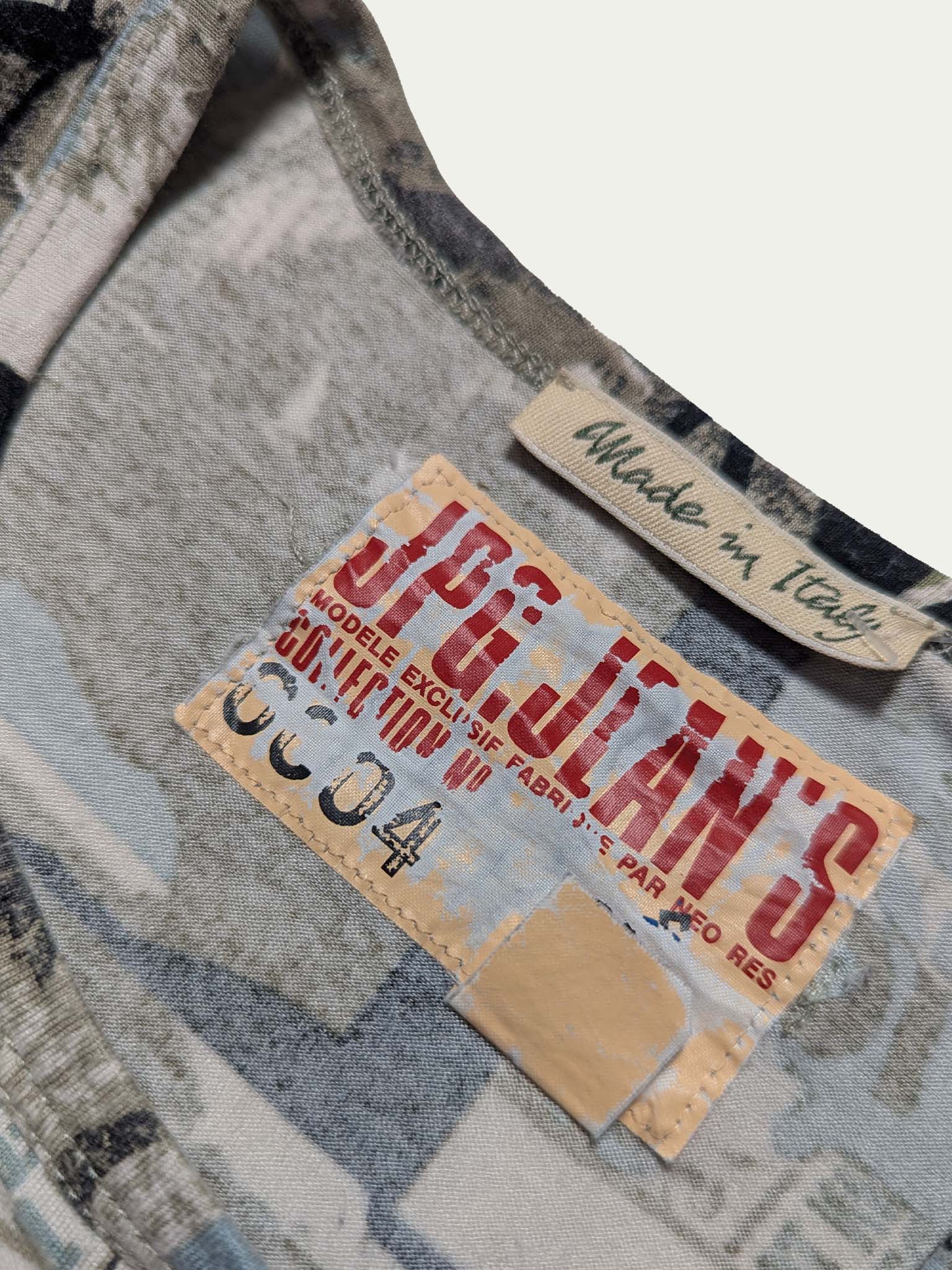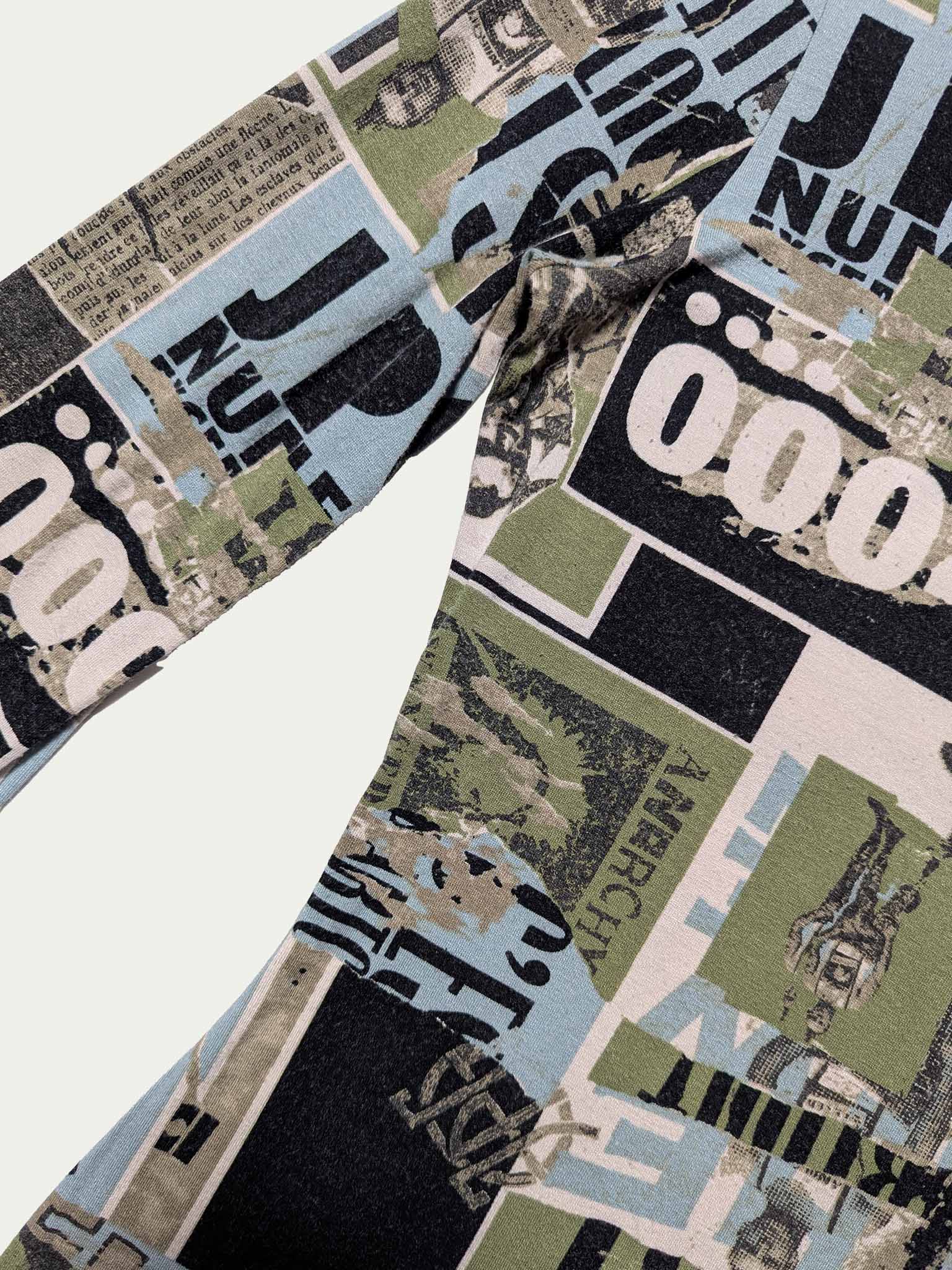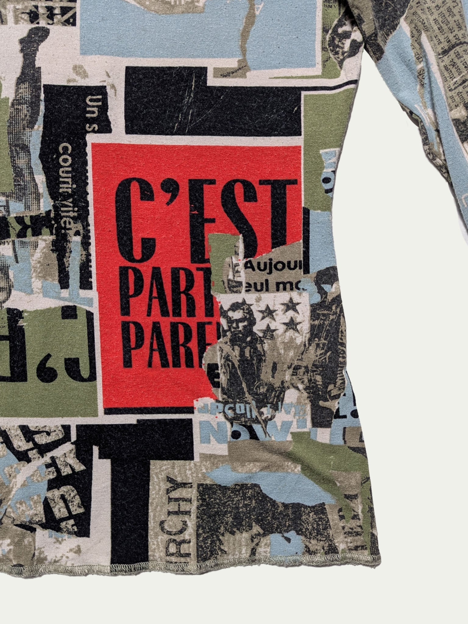 הטופ האייקוני של ז'אן פול גוטייה, משנת 1997 שלו קולקציית "להילחם בגזענות" , אשר שאב השראה מסוגיות חברתיות שעמדו בפני העולם באותה תקופה, תוך שימוש בסמלים קשורים שונים כגון שלטי אנרכיה, גרפיטי אנטי-גזעני וחלקי עיתונים.