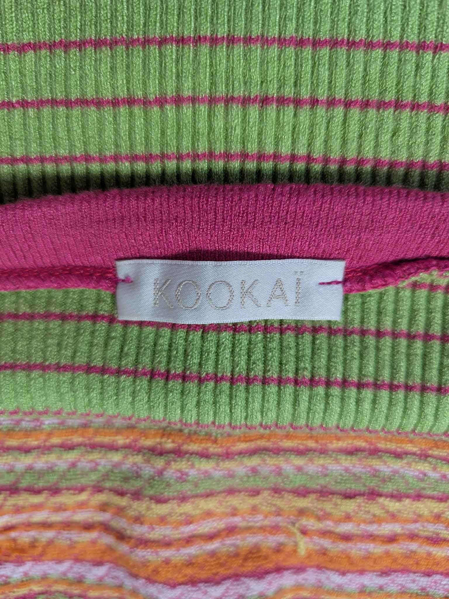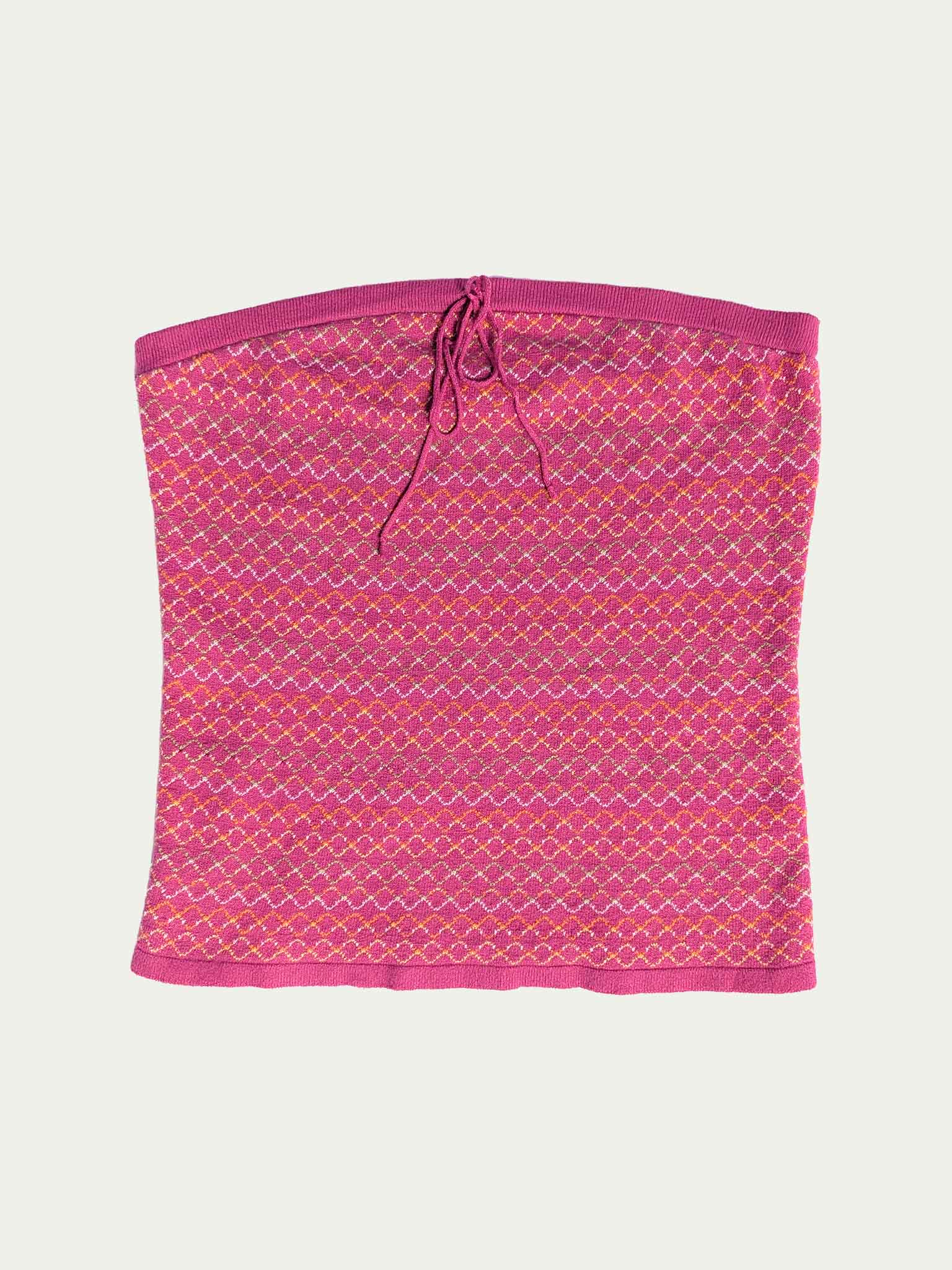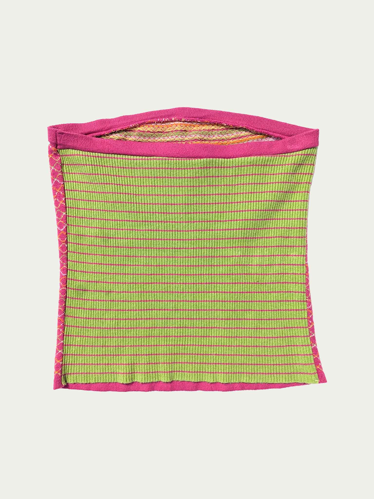 טופ סרוג ללא כתפיות של Y2K Kookaï, בצבעי ורוד וירוק עזים, עם שרוכים בחלק העליון.