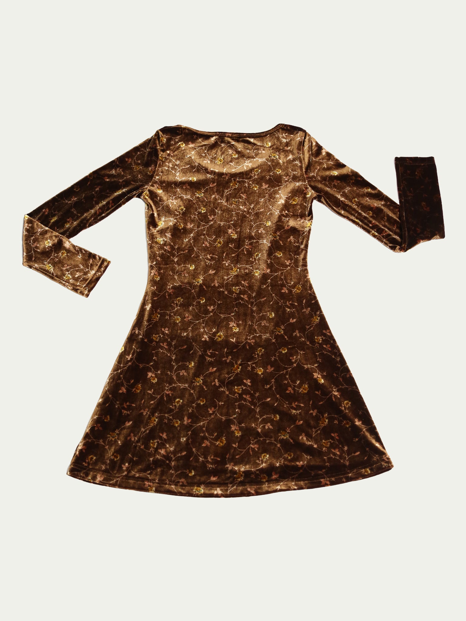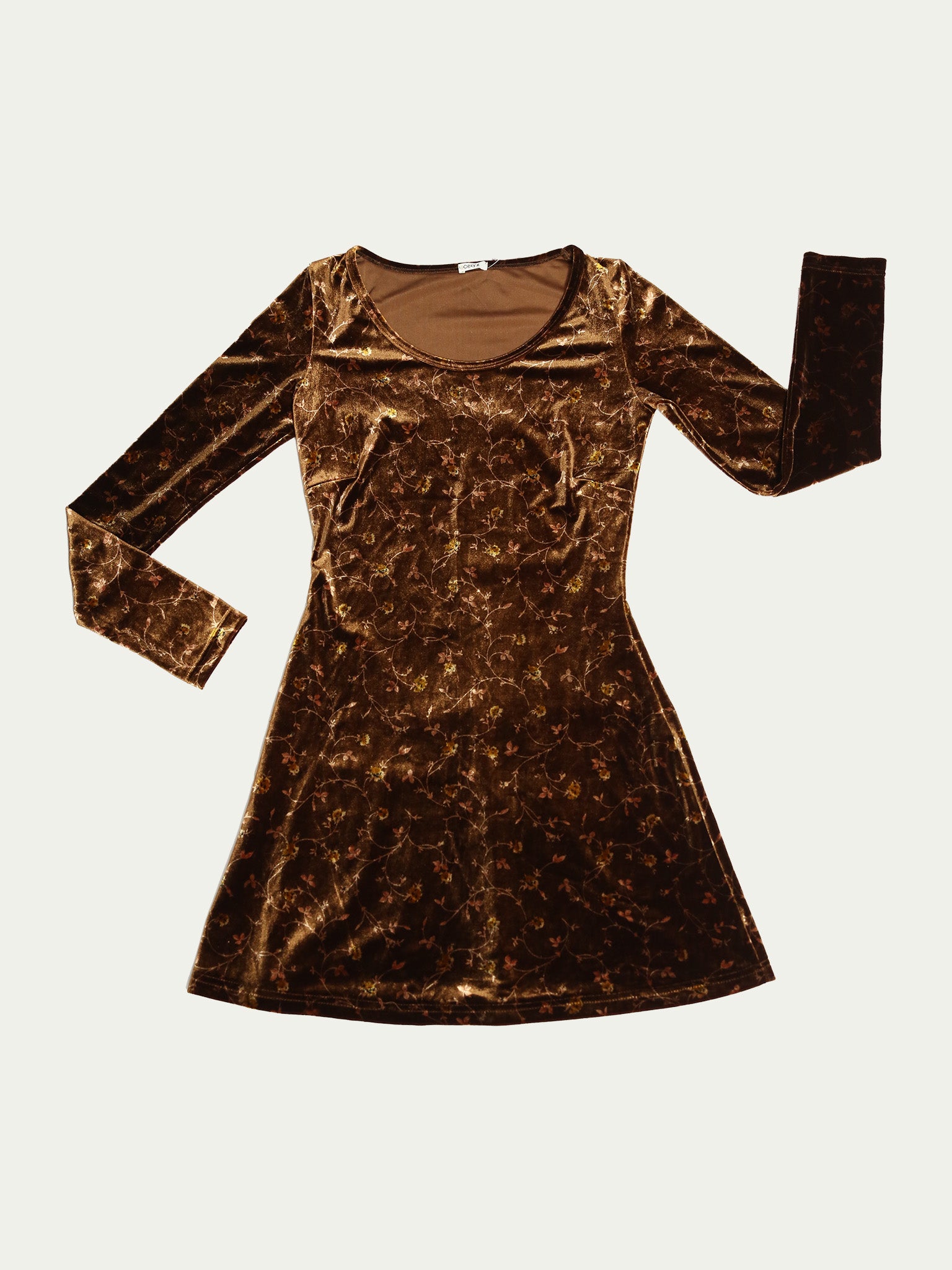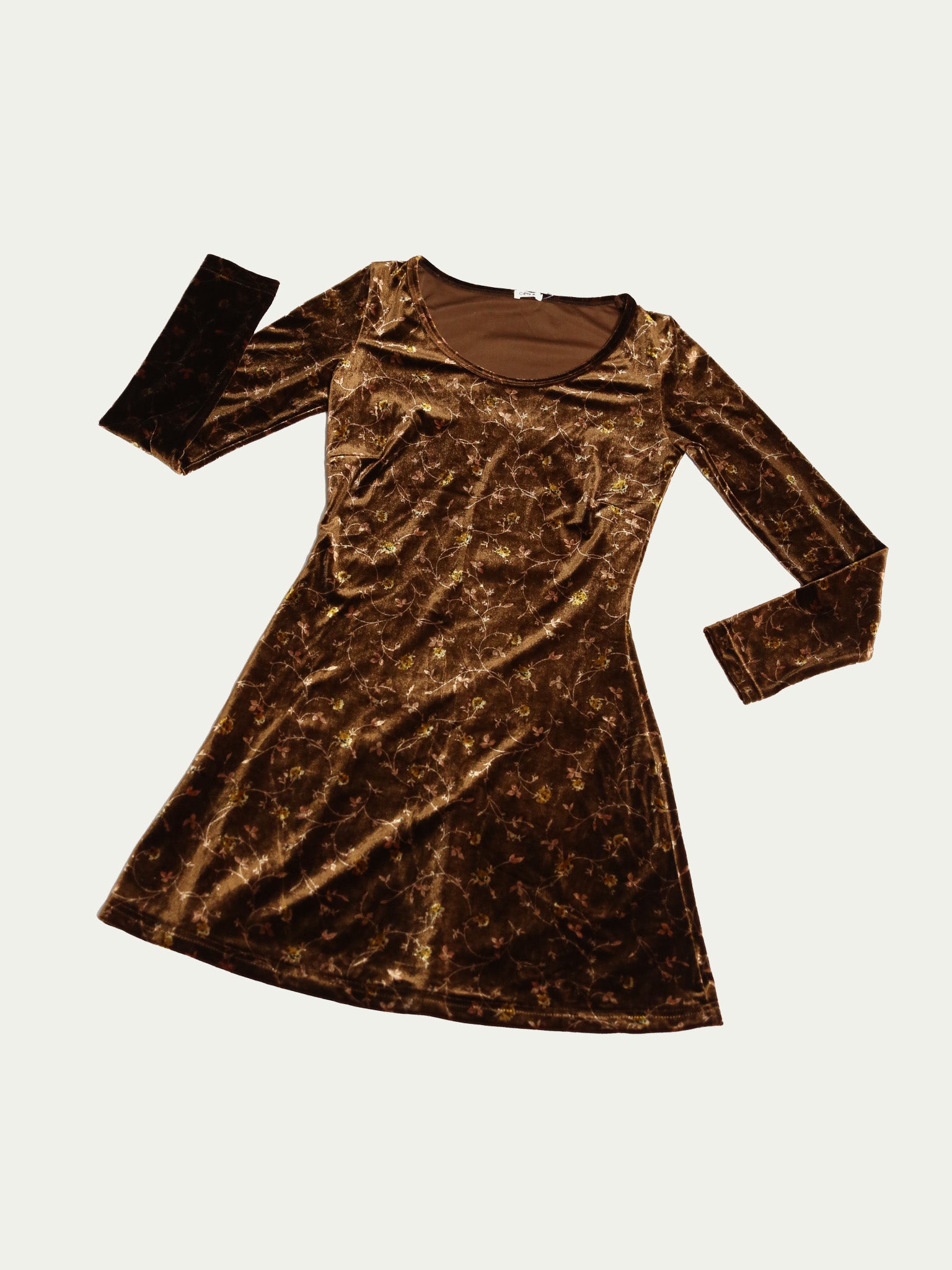 שׁוֹהַם שמלת מיני מקטיפה עם שרוולים ארוכים משנות ה-90,