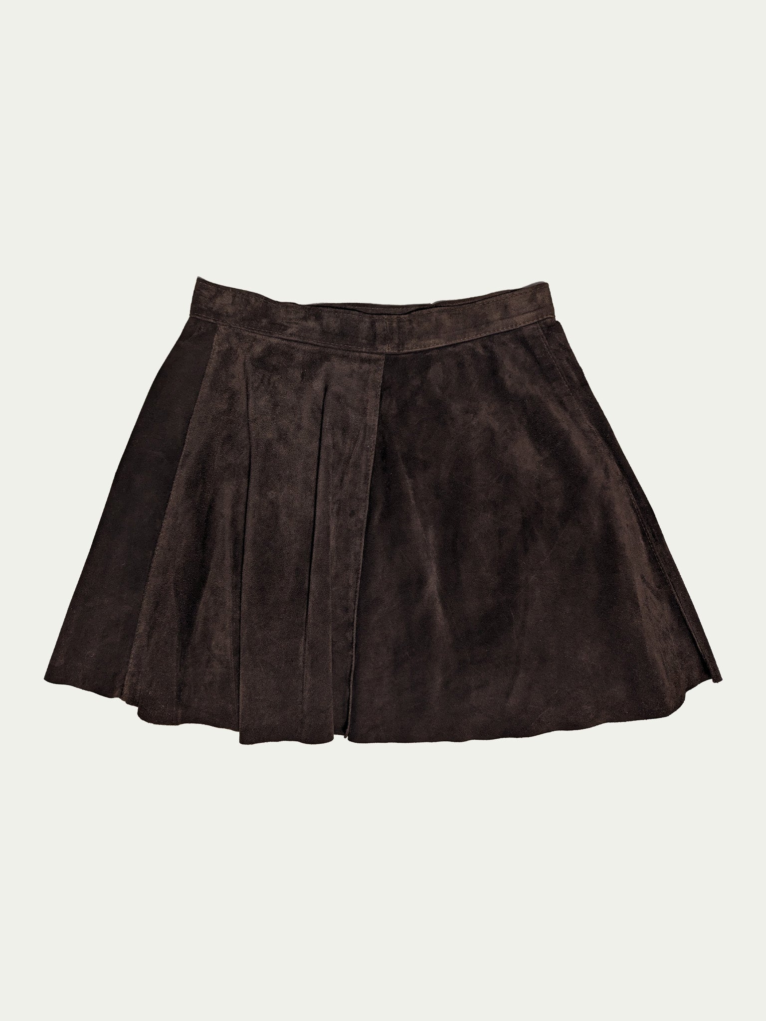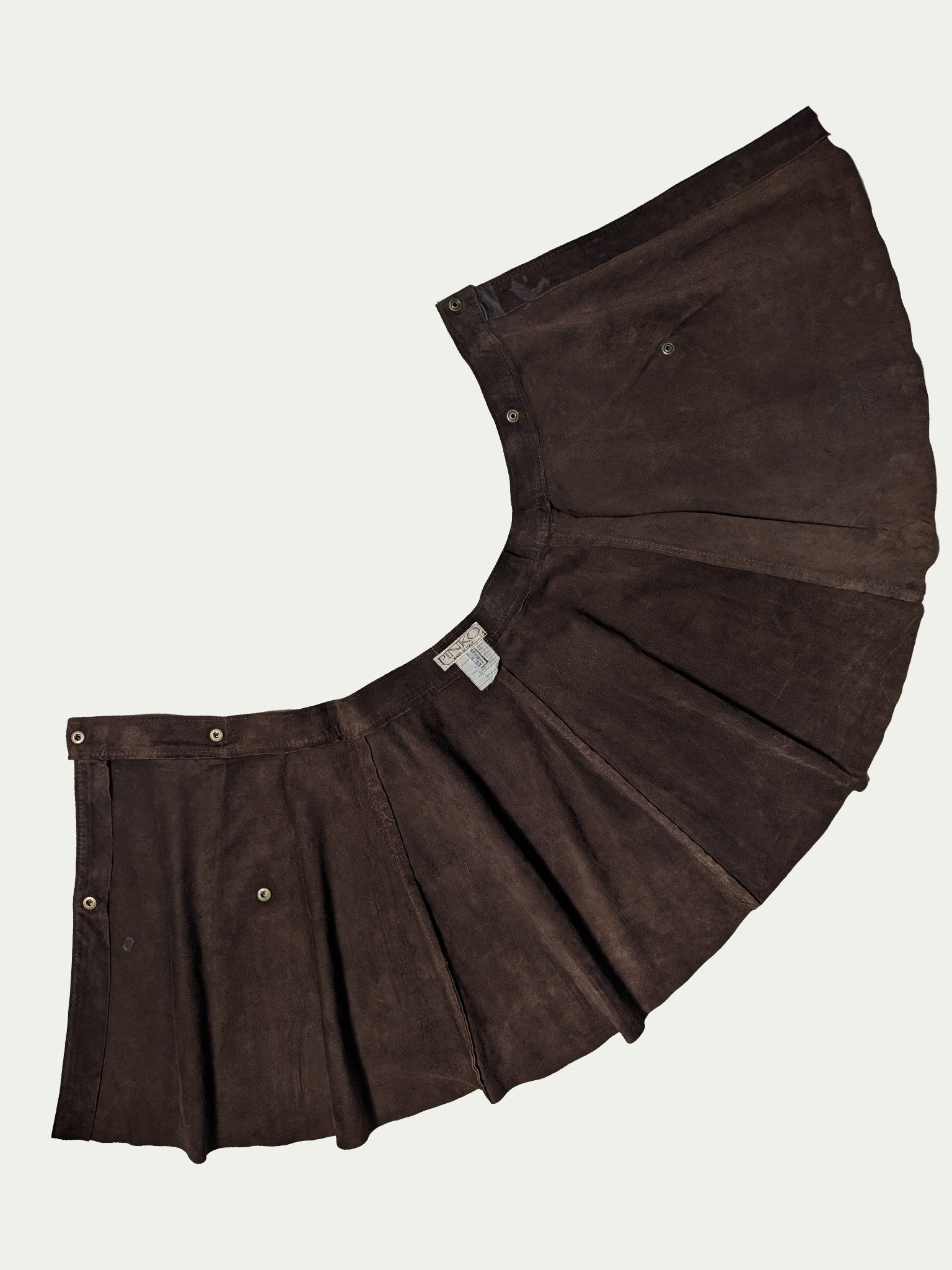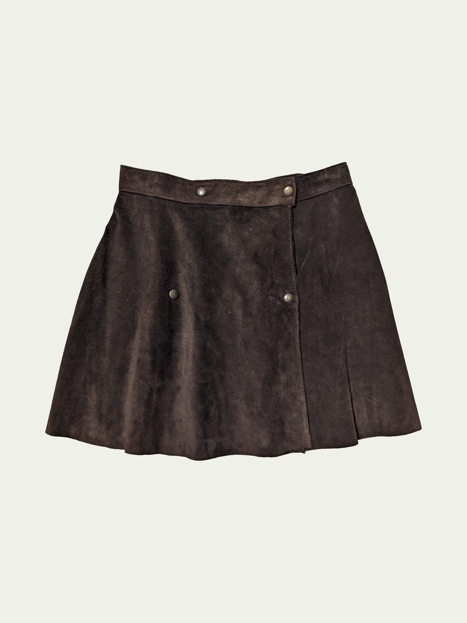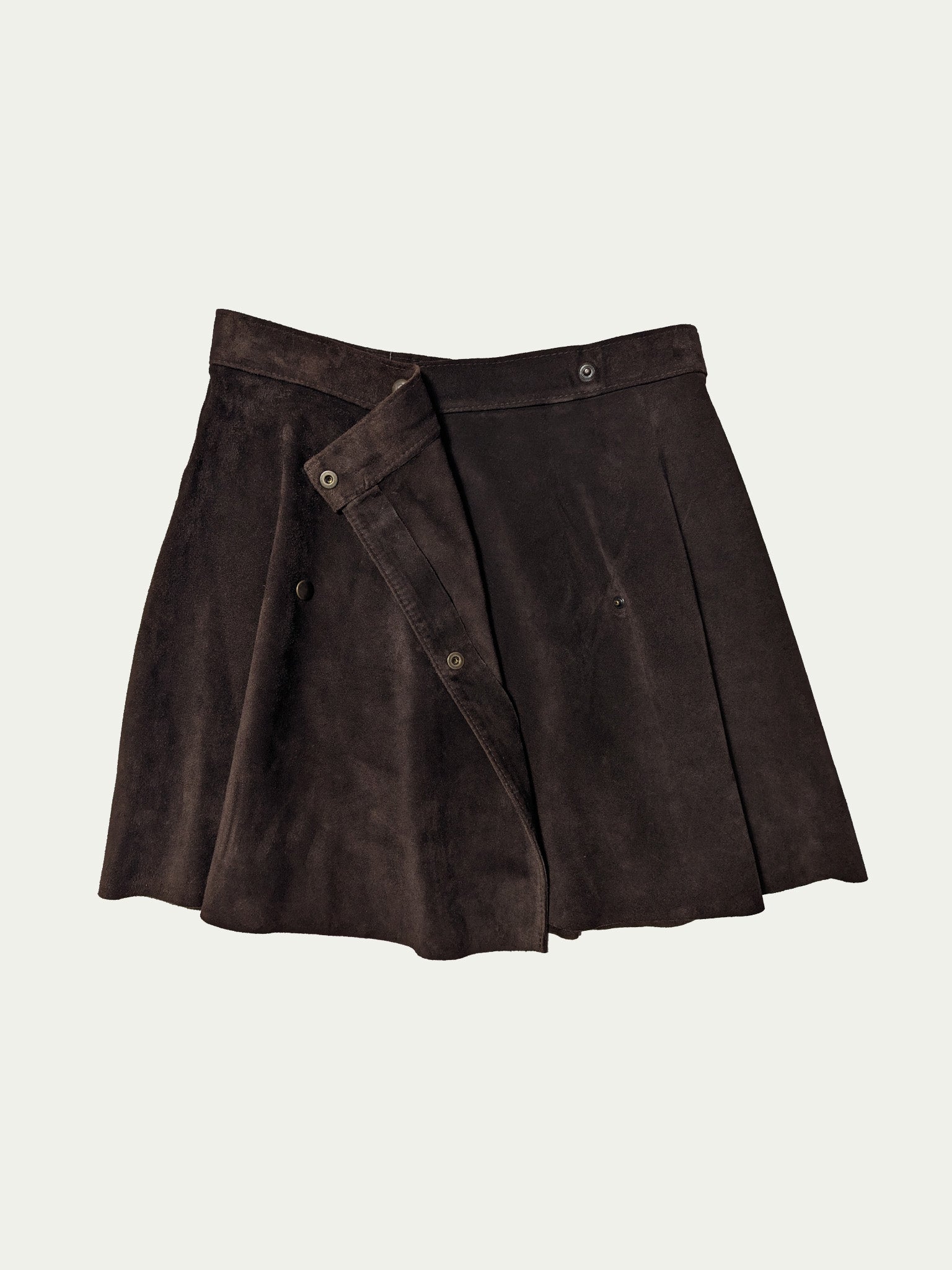 חצאית עטיפה של Pinko מתחילת שנות ה-90, עשויה מזמש רך ואיכותי, מותן בינוני/גבוה, עם שלושה סגירות כפתורים.