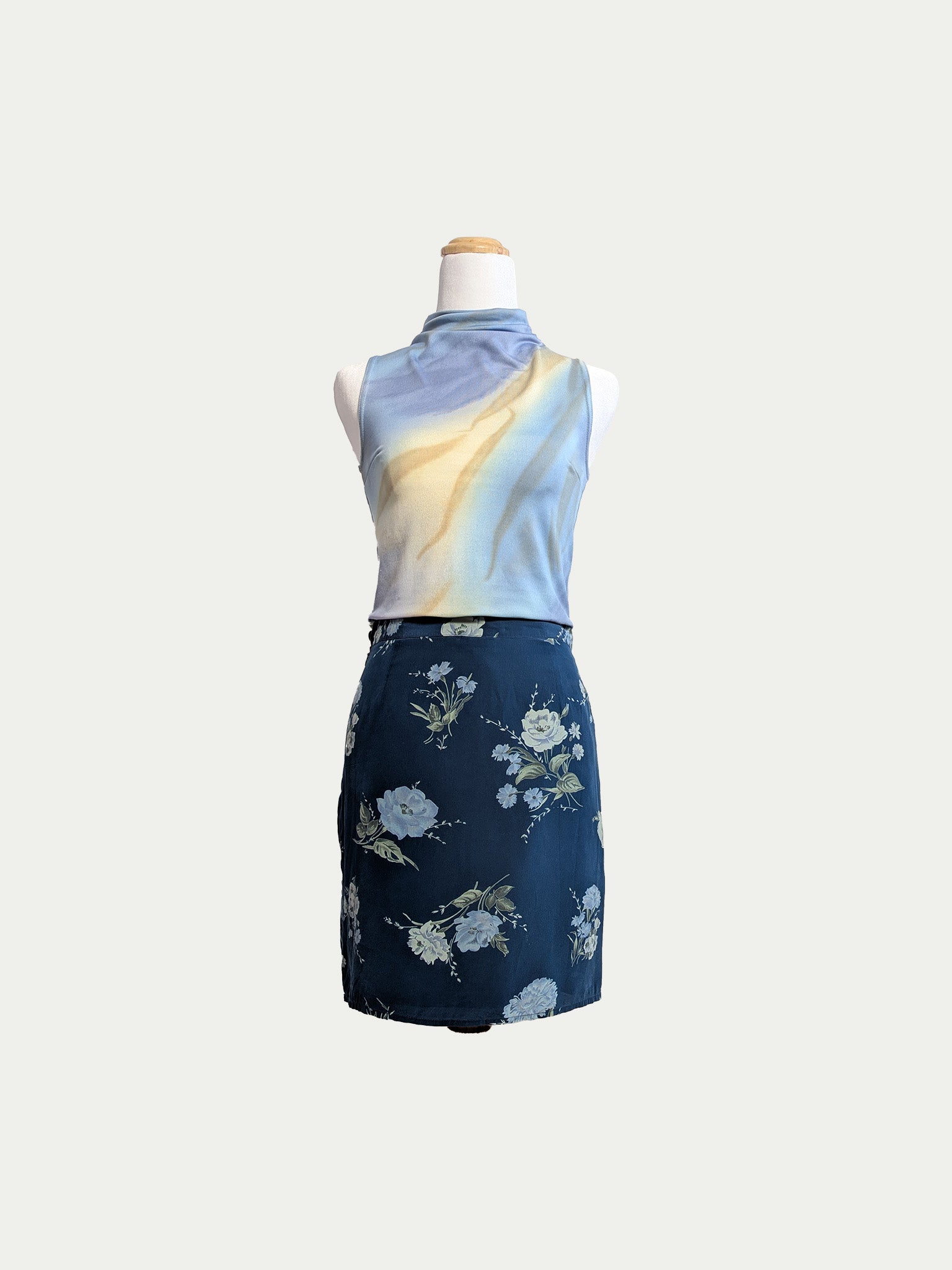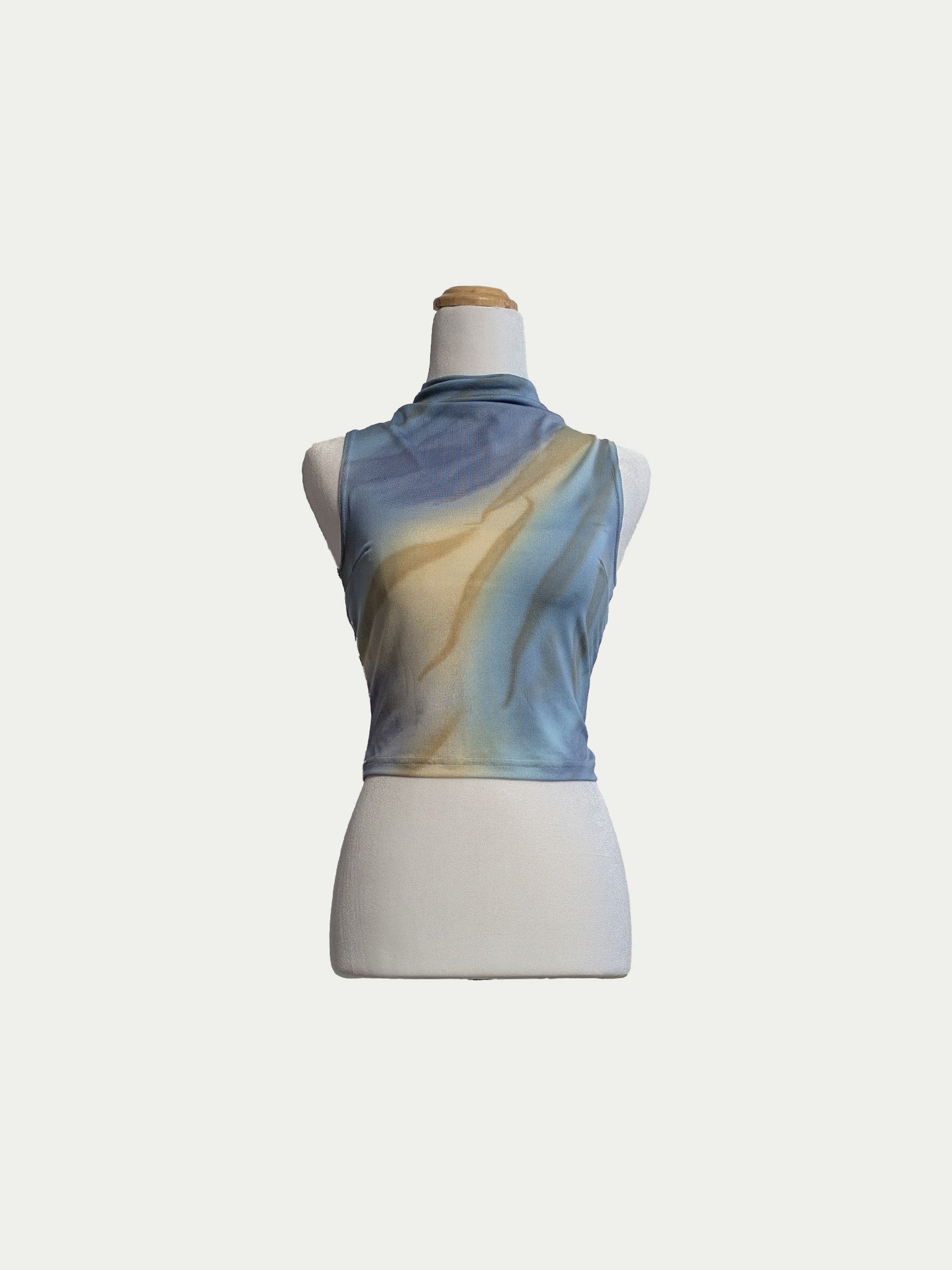Light blue stretch tank top in a cropped fit, featuring an abstract sea shades print.