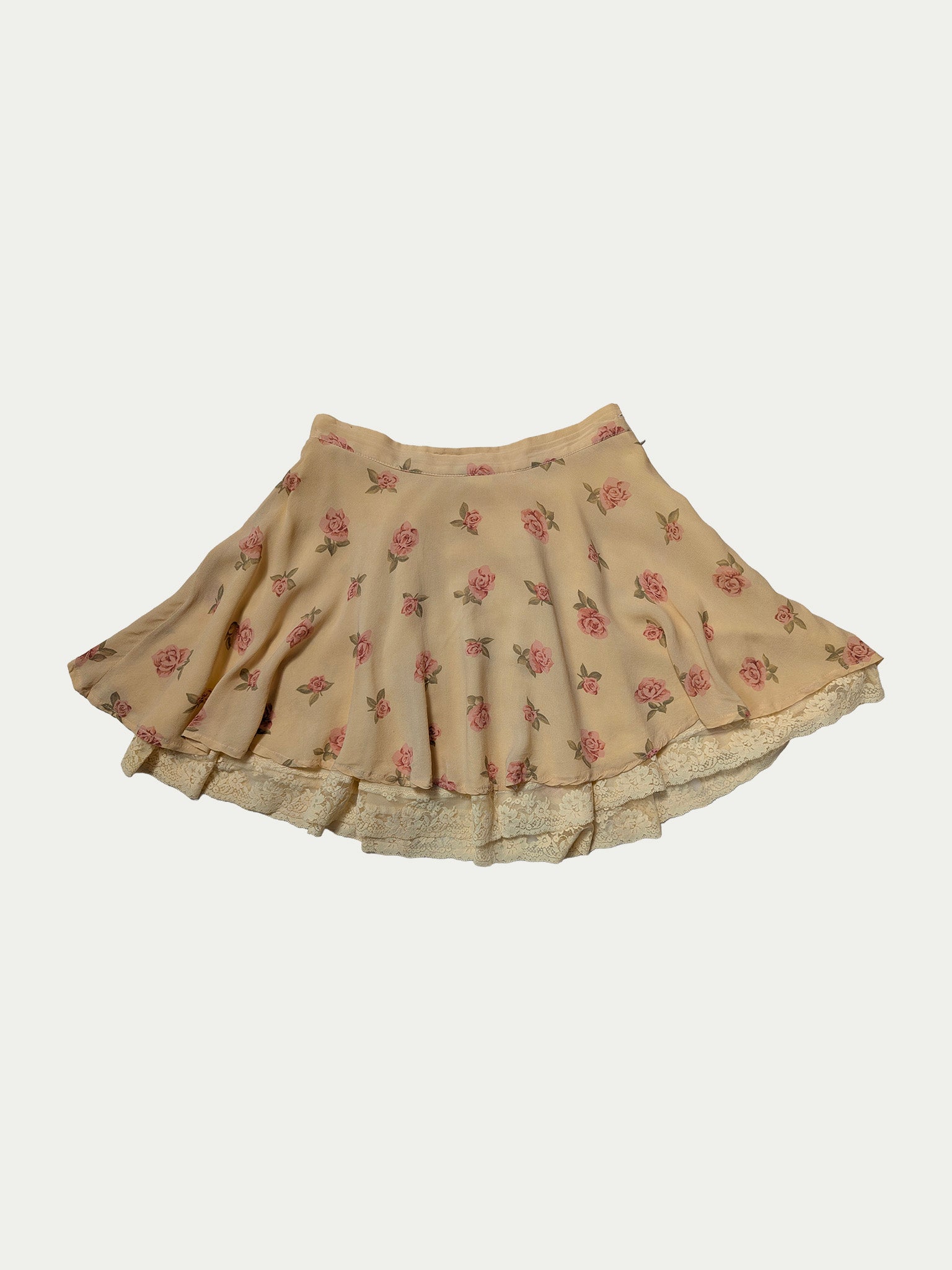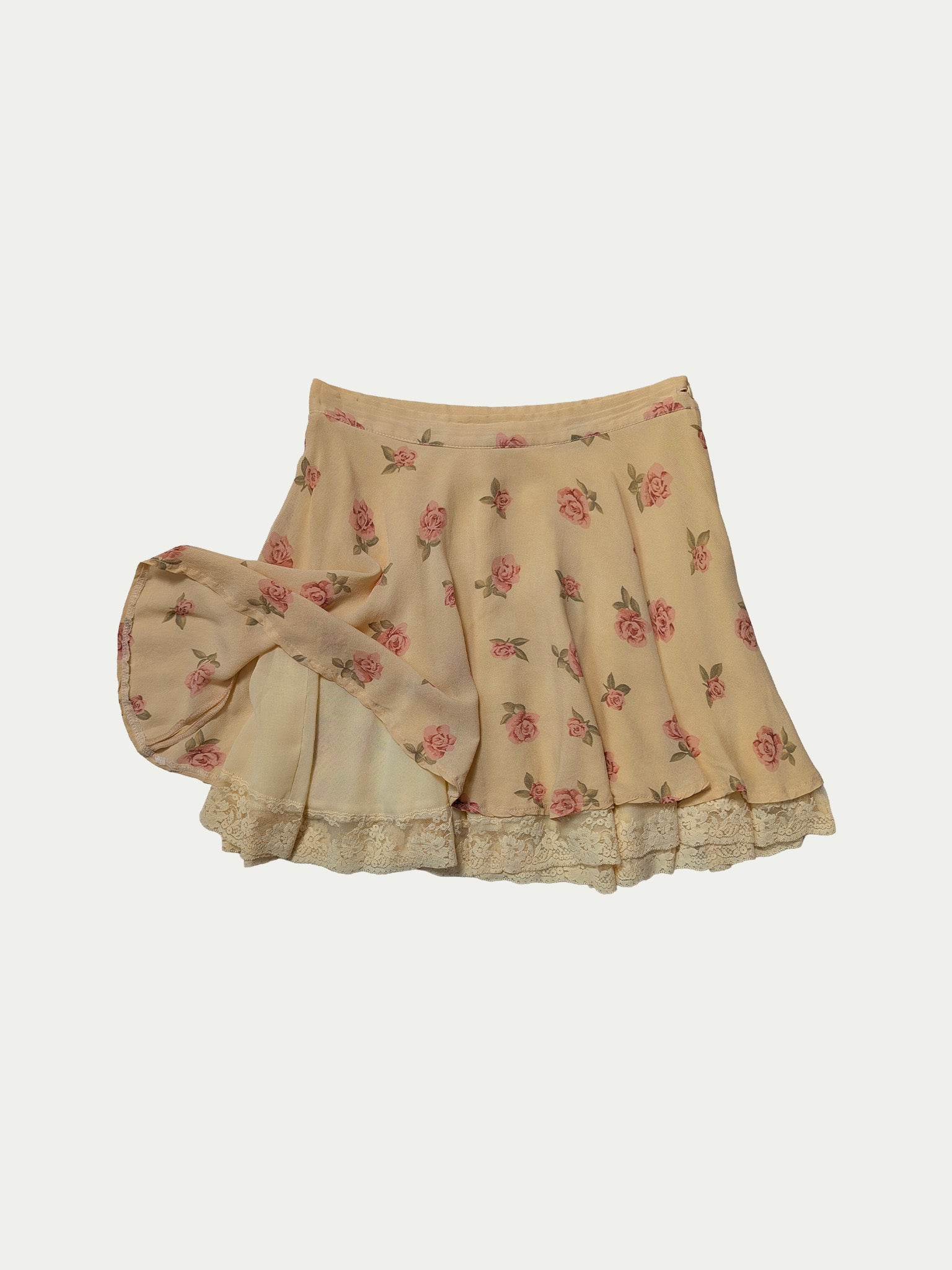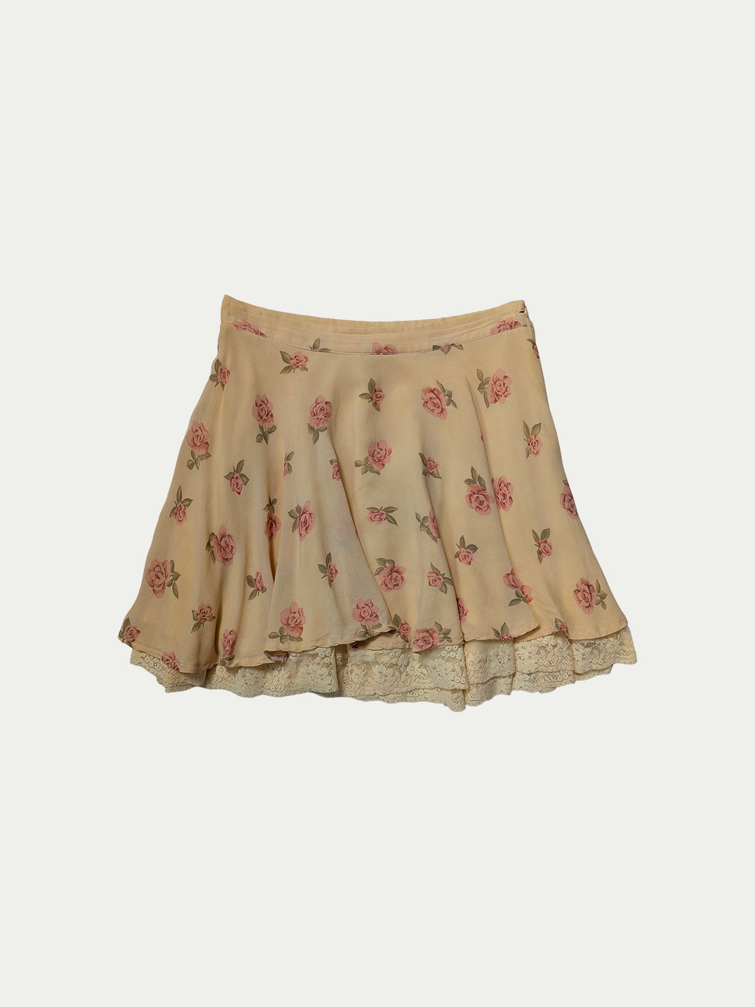 חצאית מיני ויסקוזה פרחונית בצבע קרם