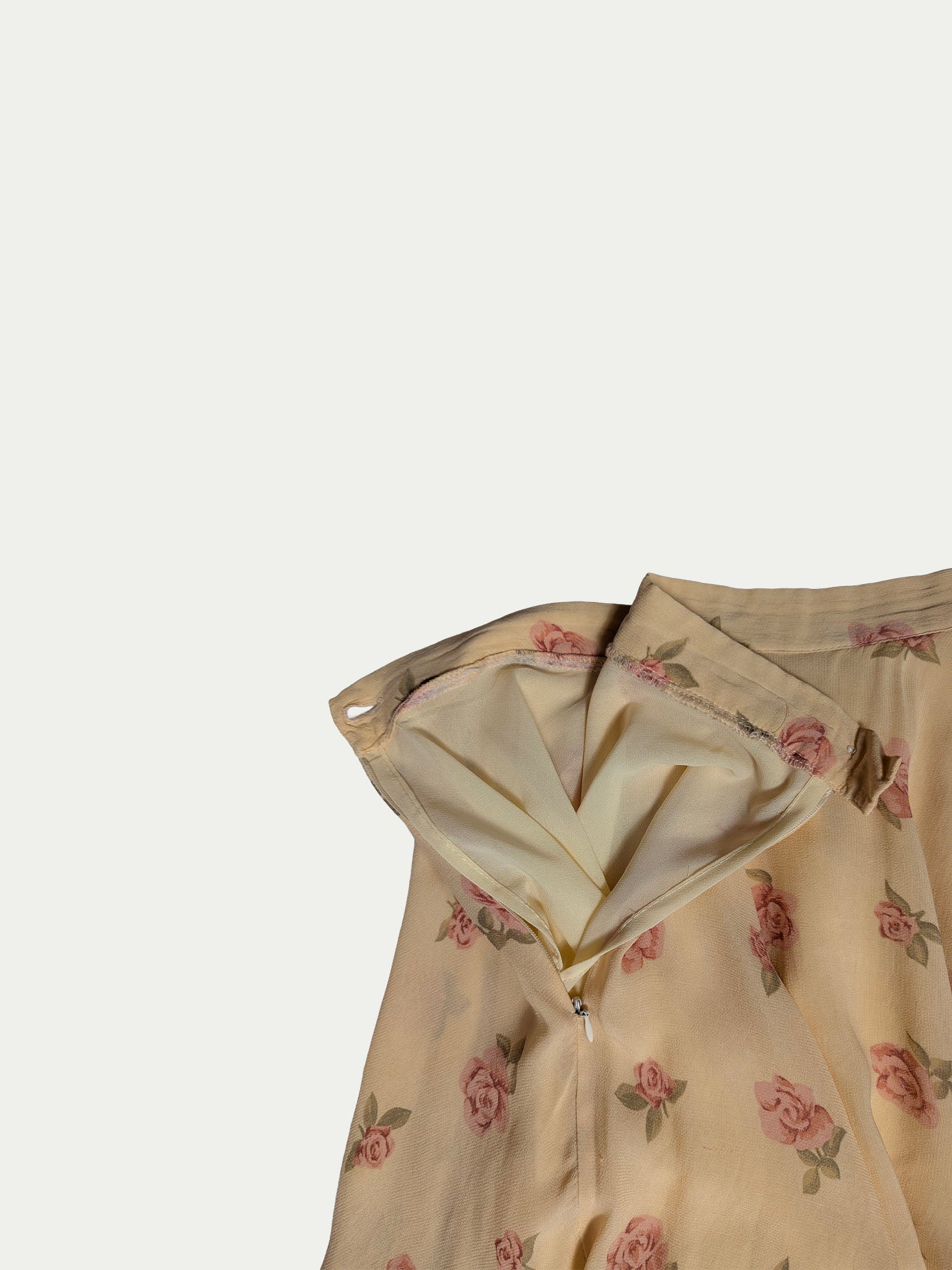 חצאית מיני ויסקוזה מתחילת שנות ה-2000 עם גזרה עגולה, שכבה כפולה וסגירת תחרה. כוללת רוכסן צדדי נסתר וסגירת כפתורים.