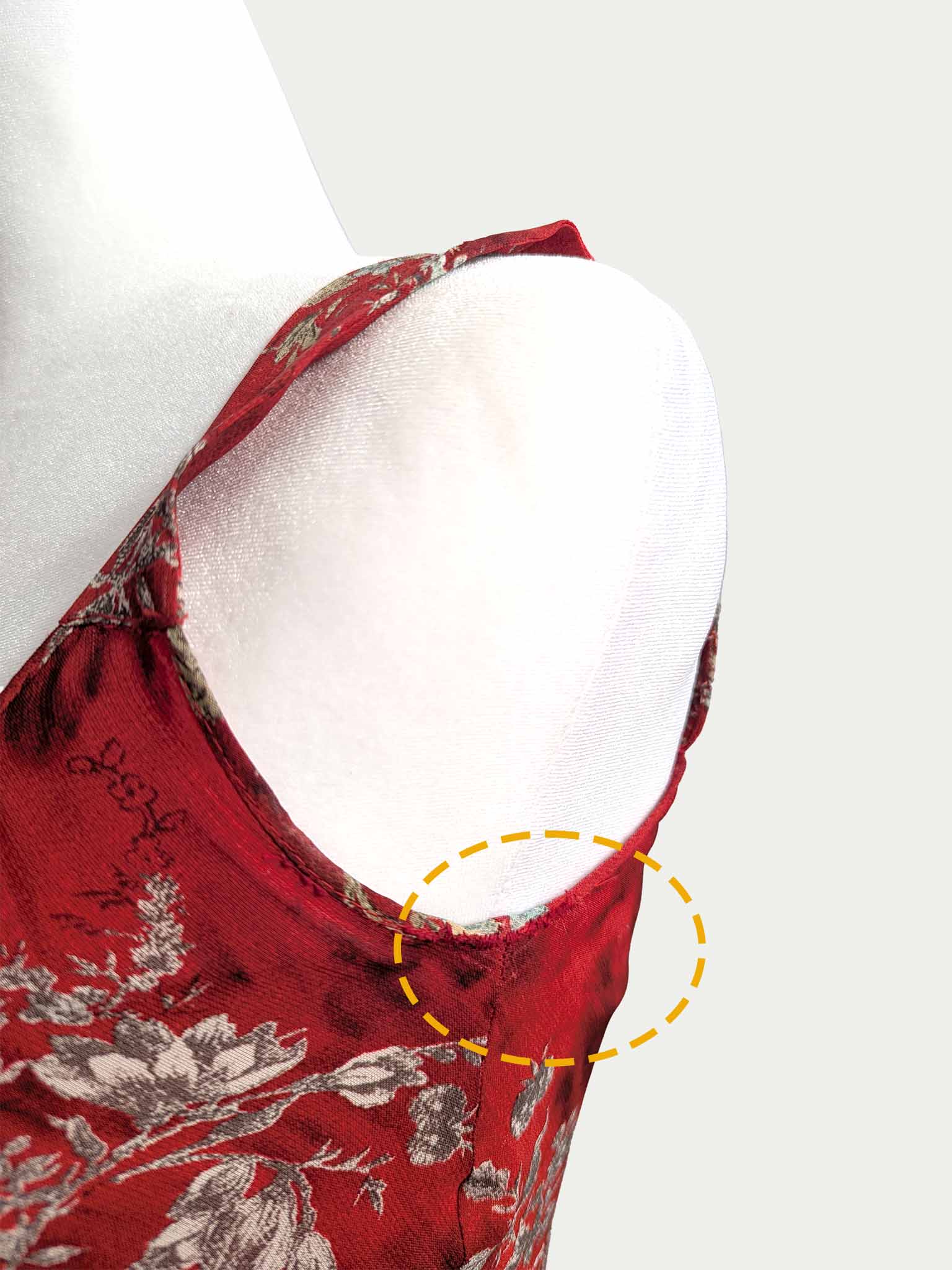 Minor signs of wear and neat repairs at the left underarm, back strap connections, and the top of the lacing - all discreet when worn.
