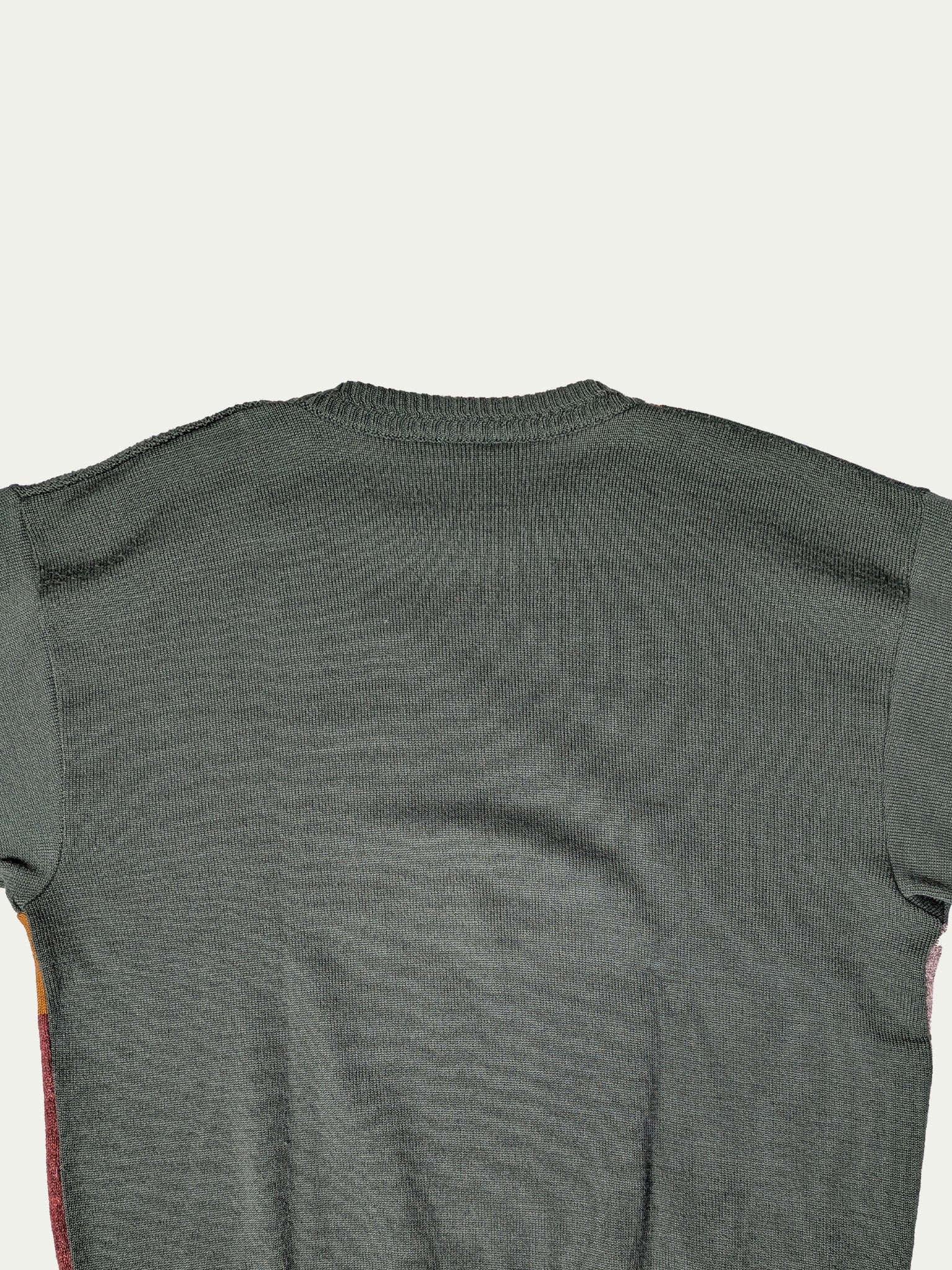 90's Geometrical patterned sweater, in warm smokey shades, and various knitting textures.