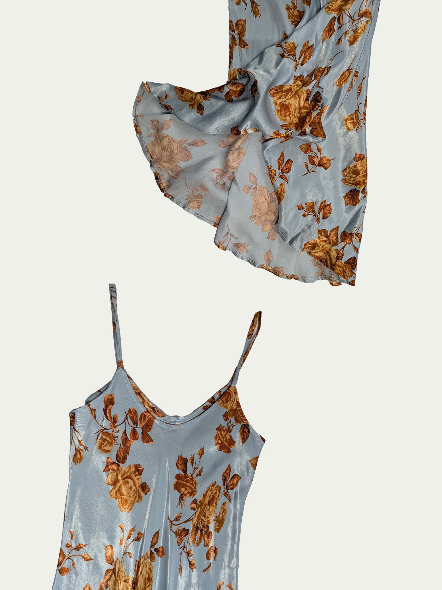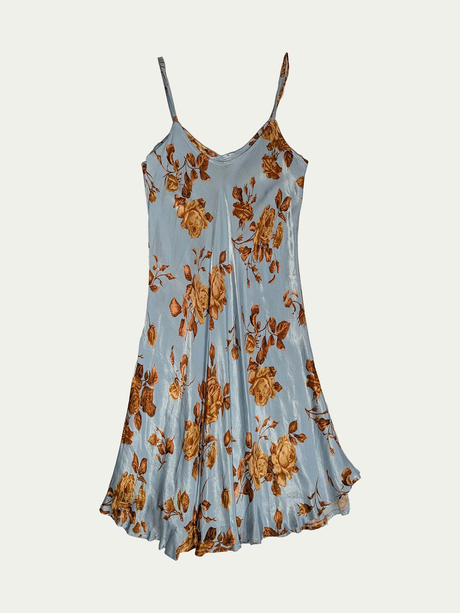 90's light-blue satin mini dress. classic and elegant, both casual and festive.
