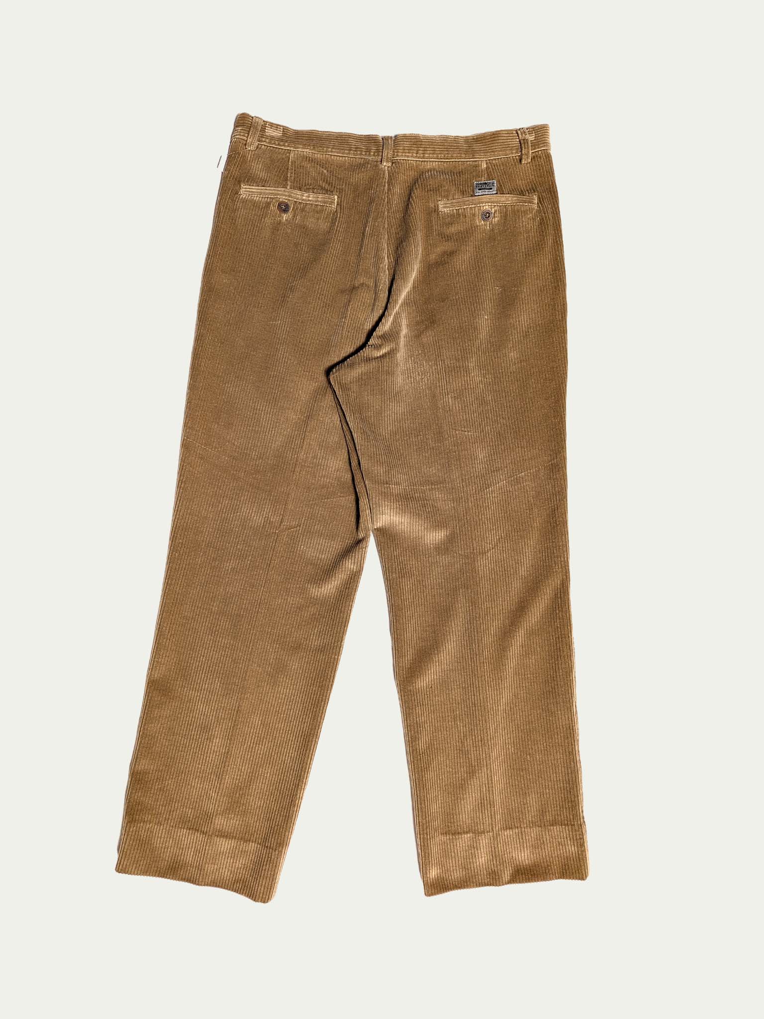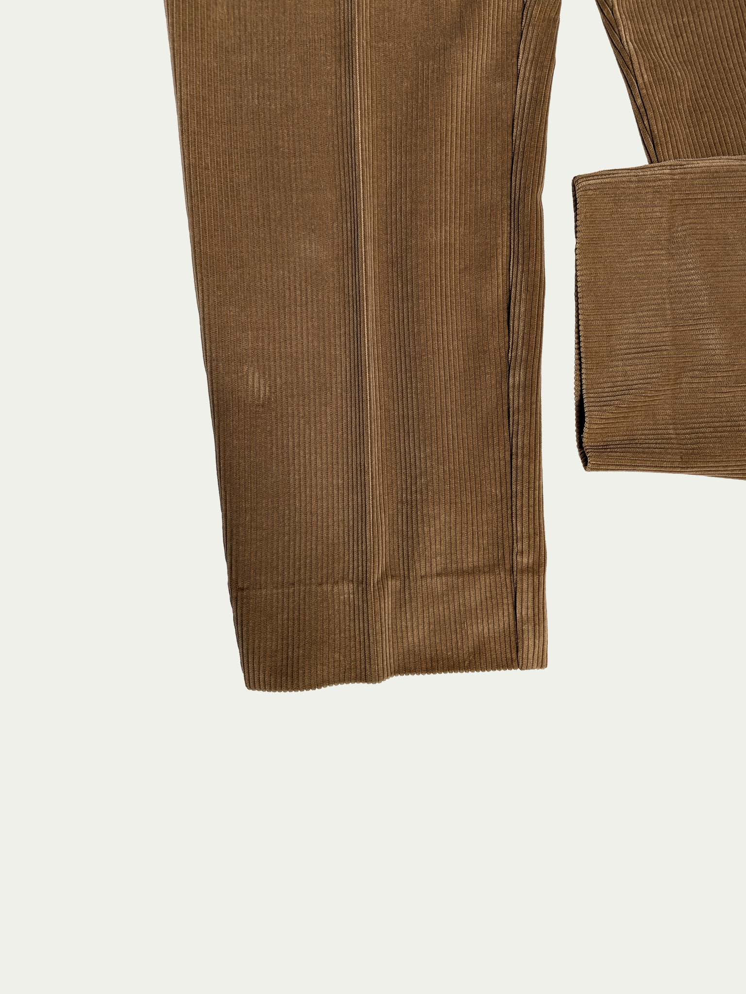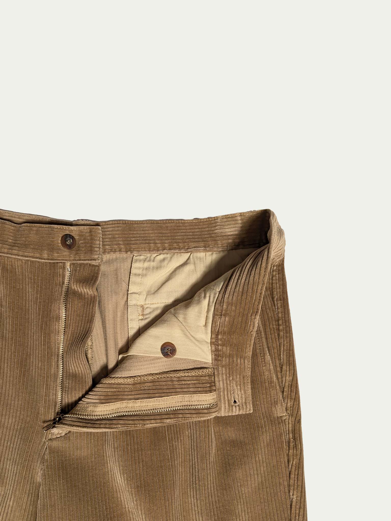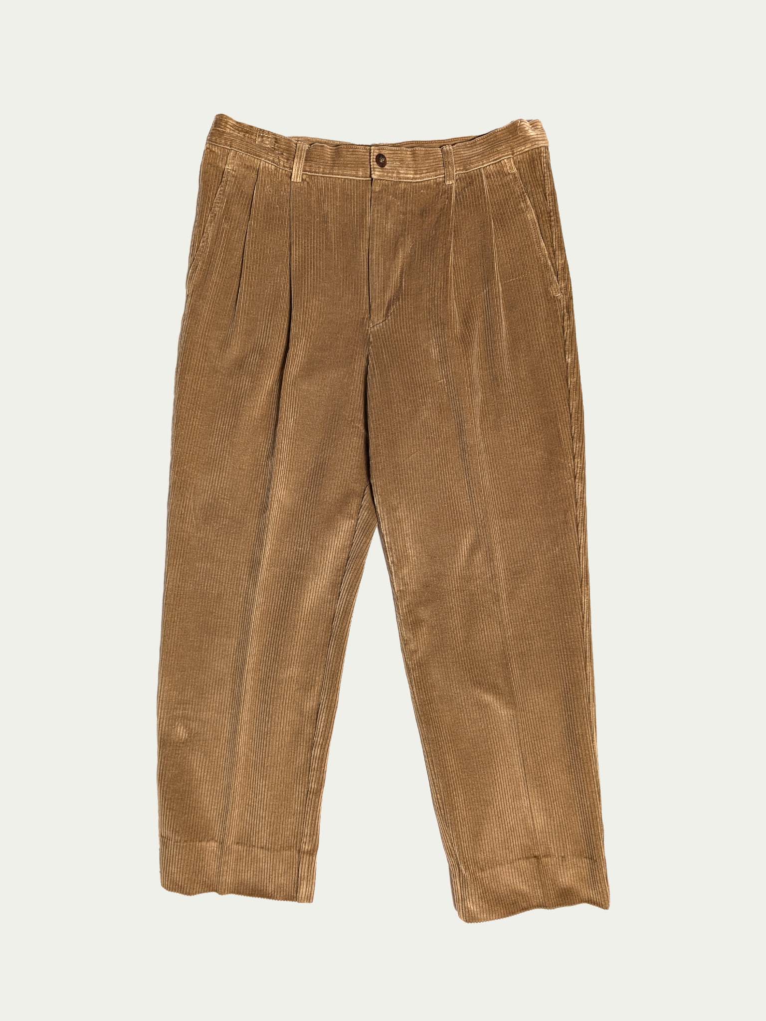 Belfe & Belfe 90's Corduroy pleated trousers, in a camel shade, and a classic high/mid-waist cut.