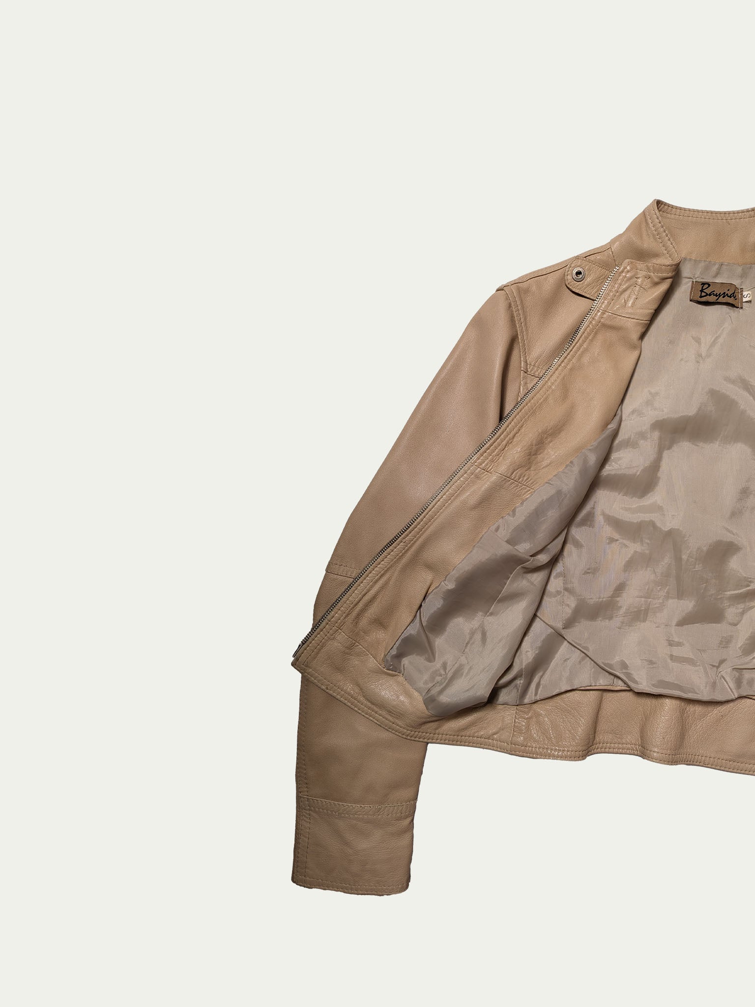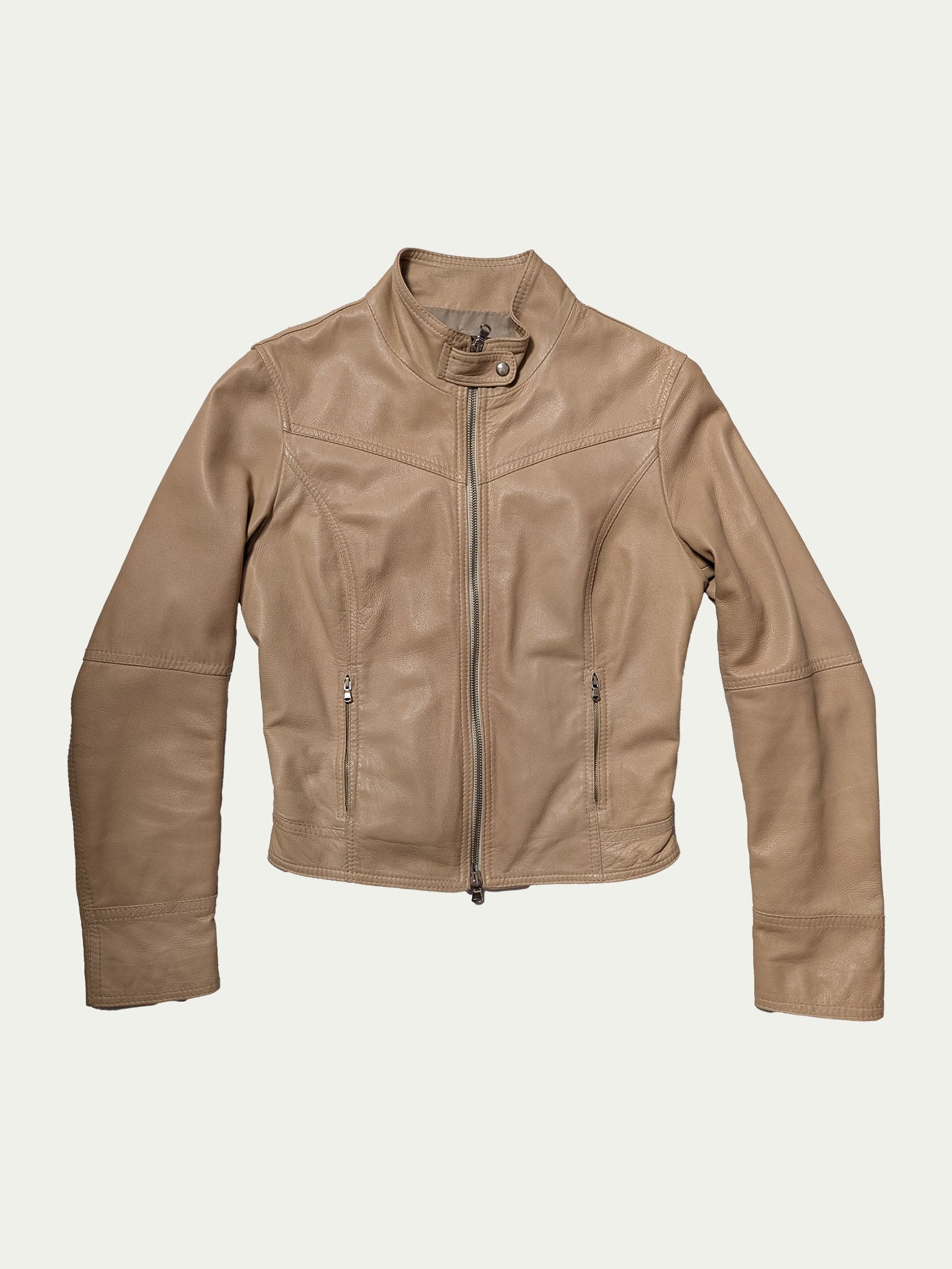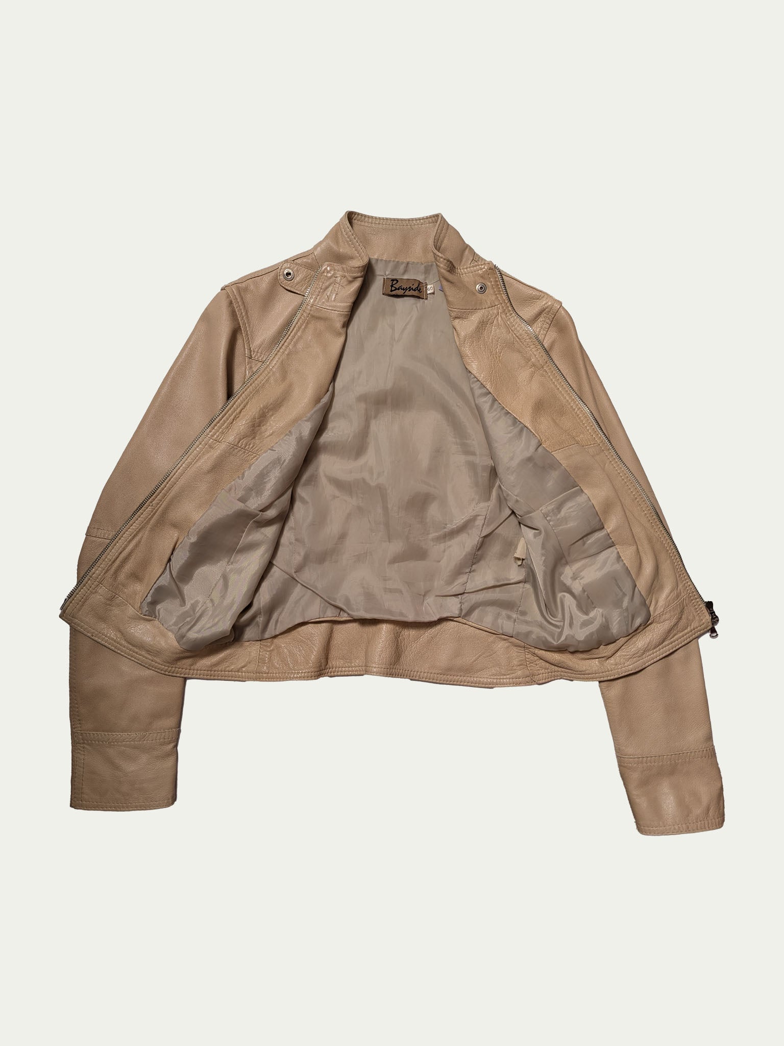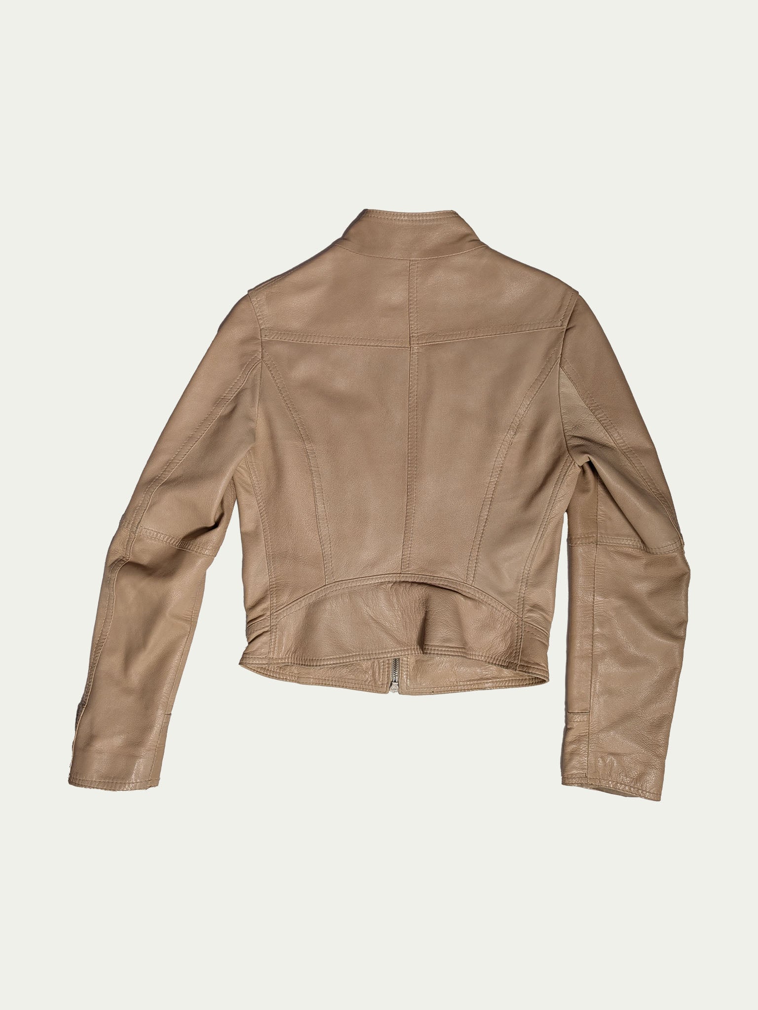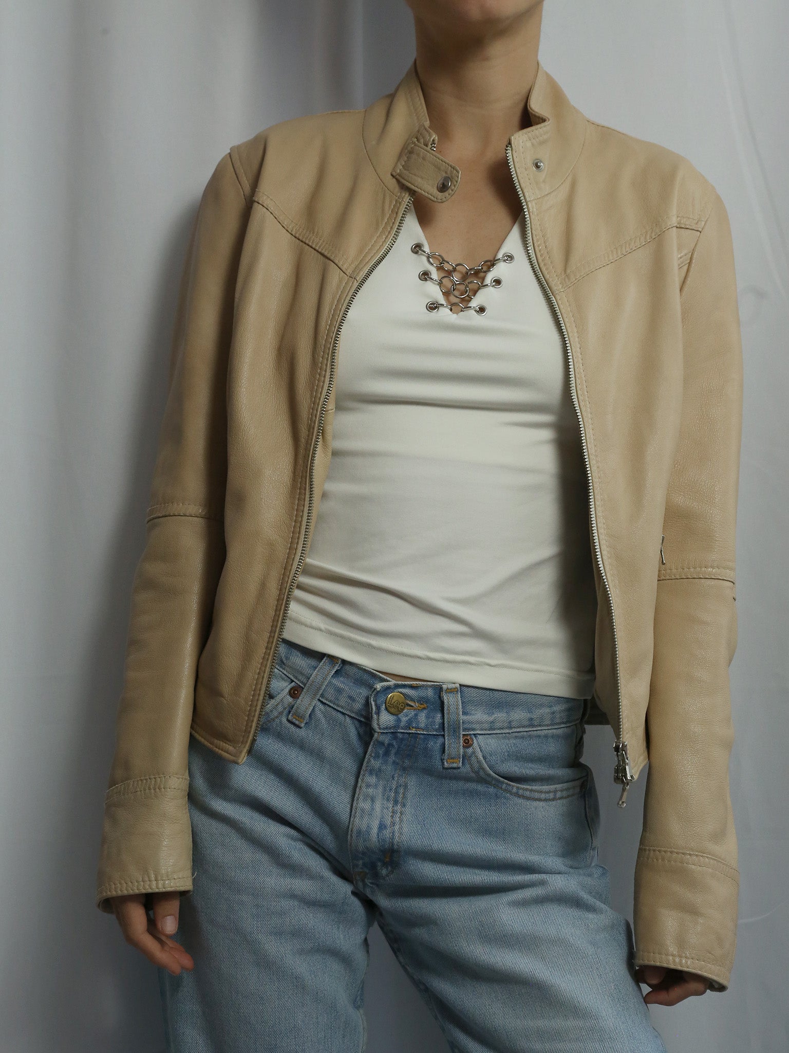 Y2K leather motor jacket, in ivory shade and a clean elegant cut.