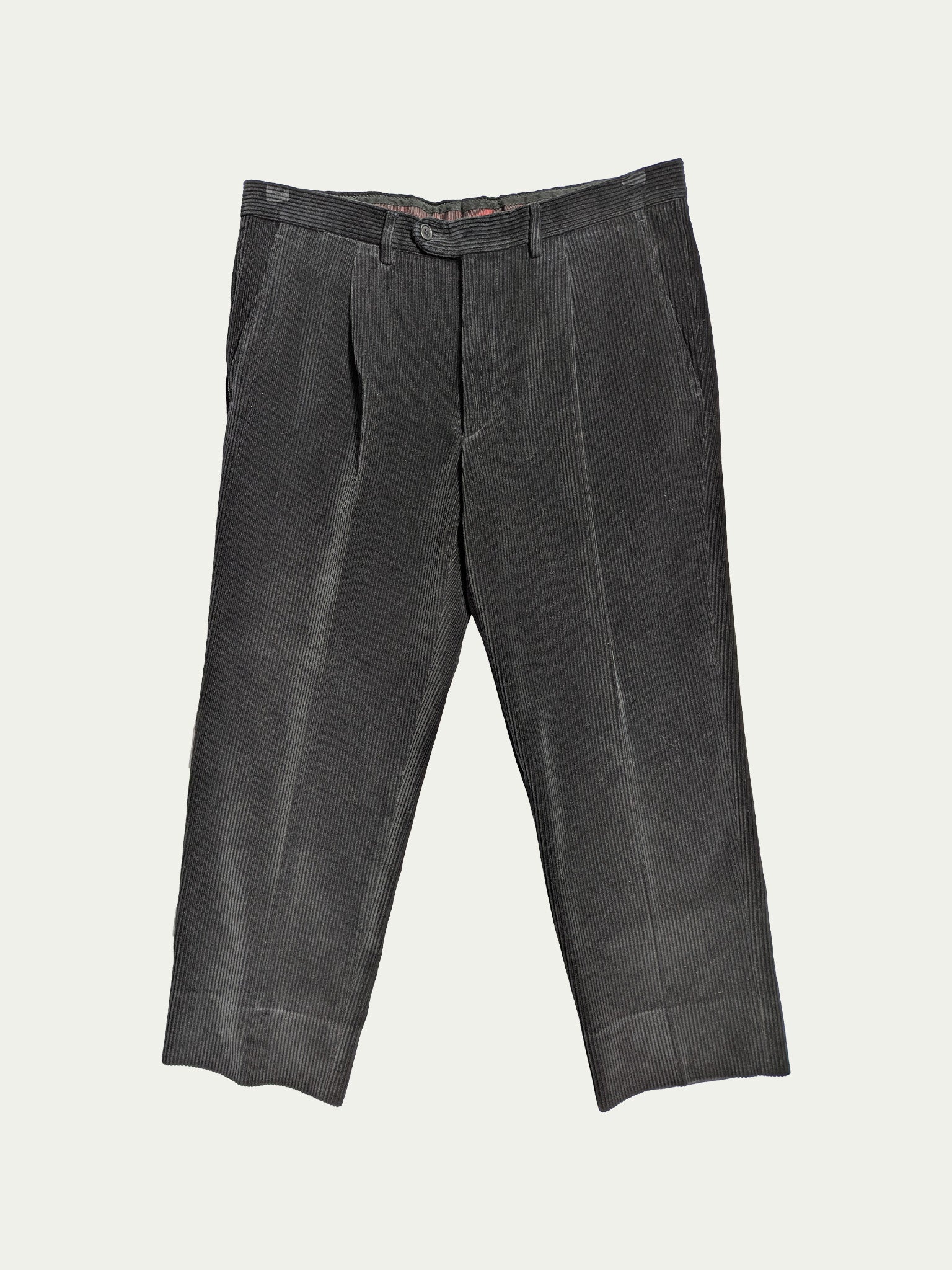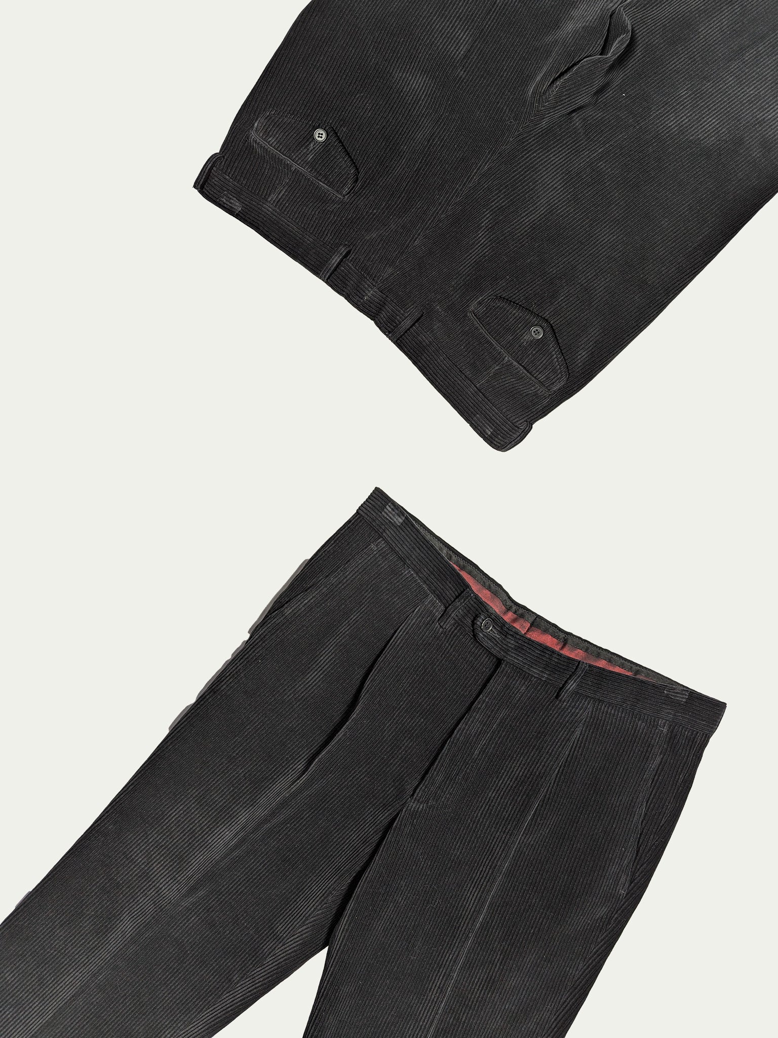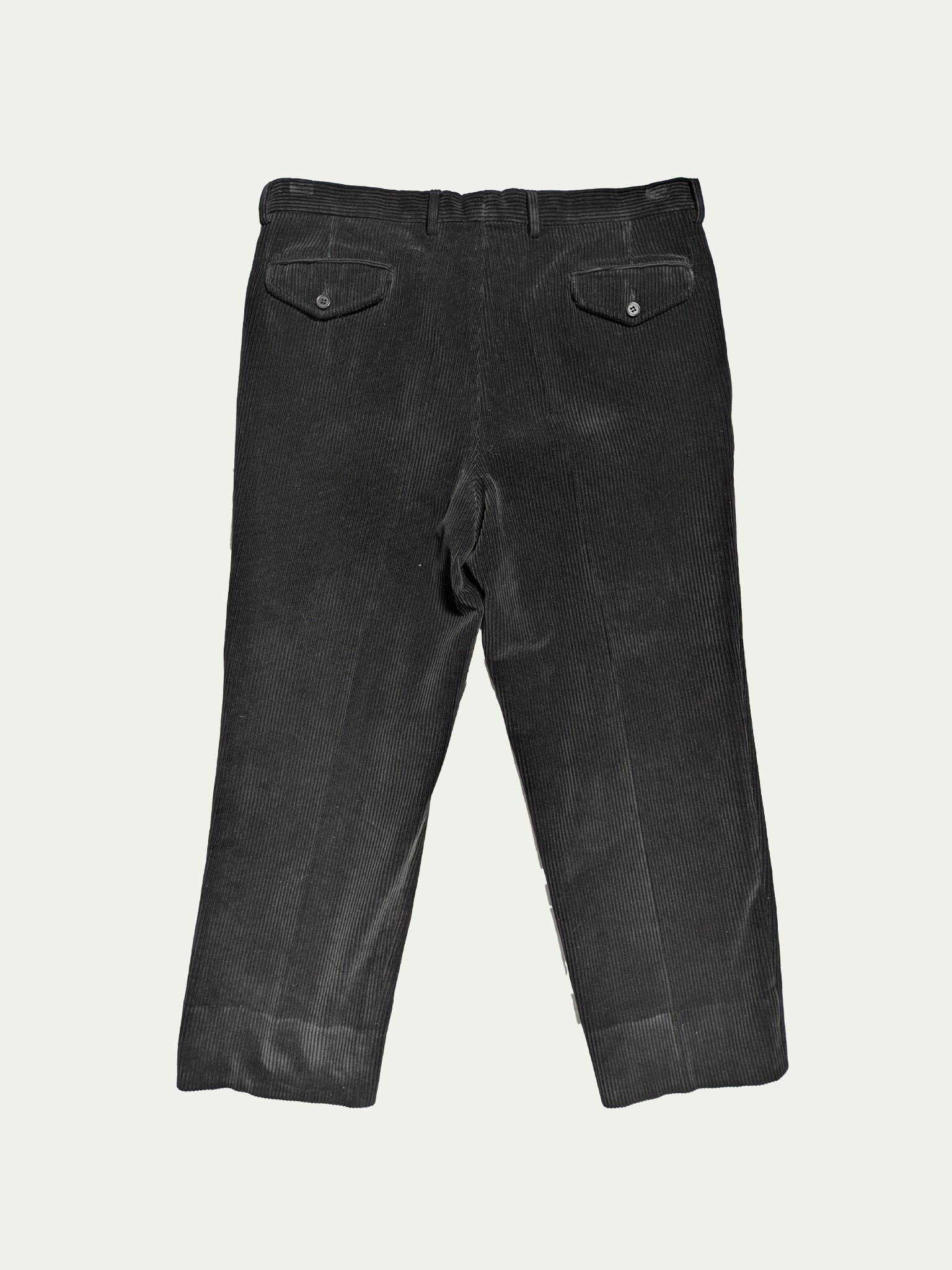 90's Black corduroy pleated pants, originally for men, in a classic wide cut, with hems.