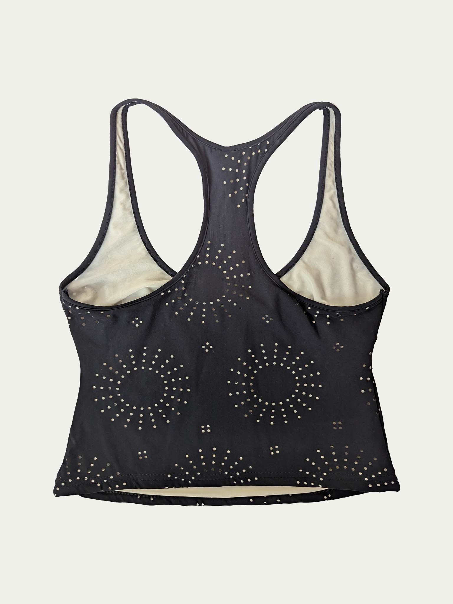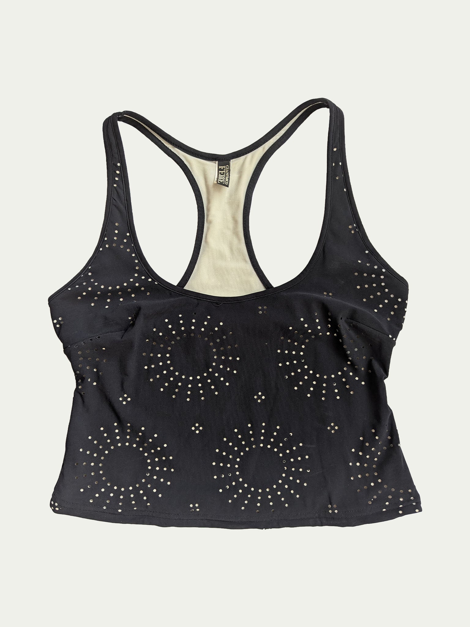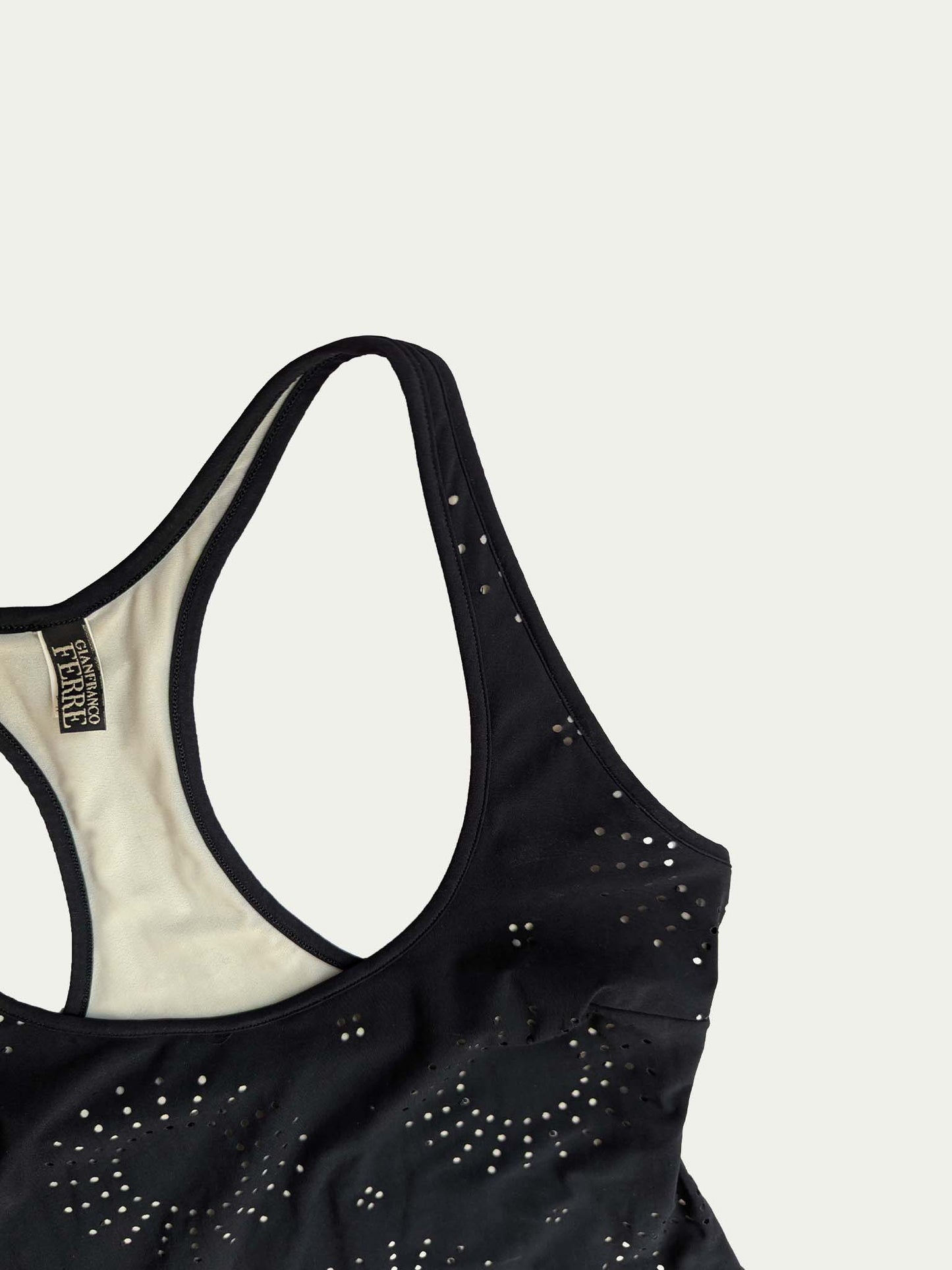 Y2K Gianfranco Ferre sporty cropped top, black with a white lining and a delicate pattern made of tiny holes.