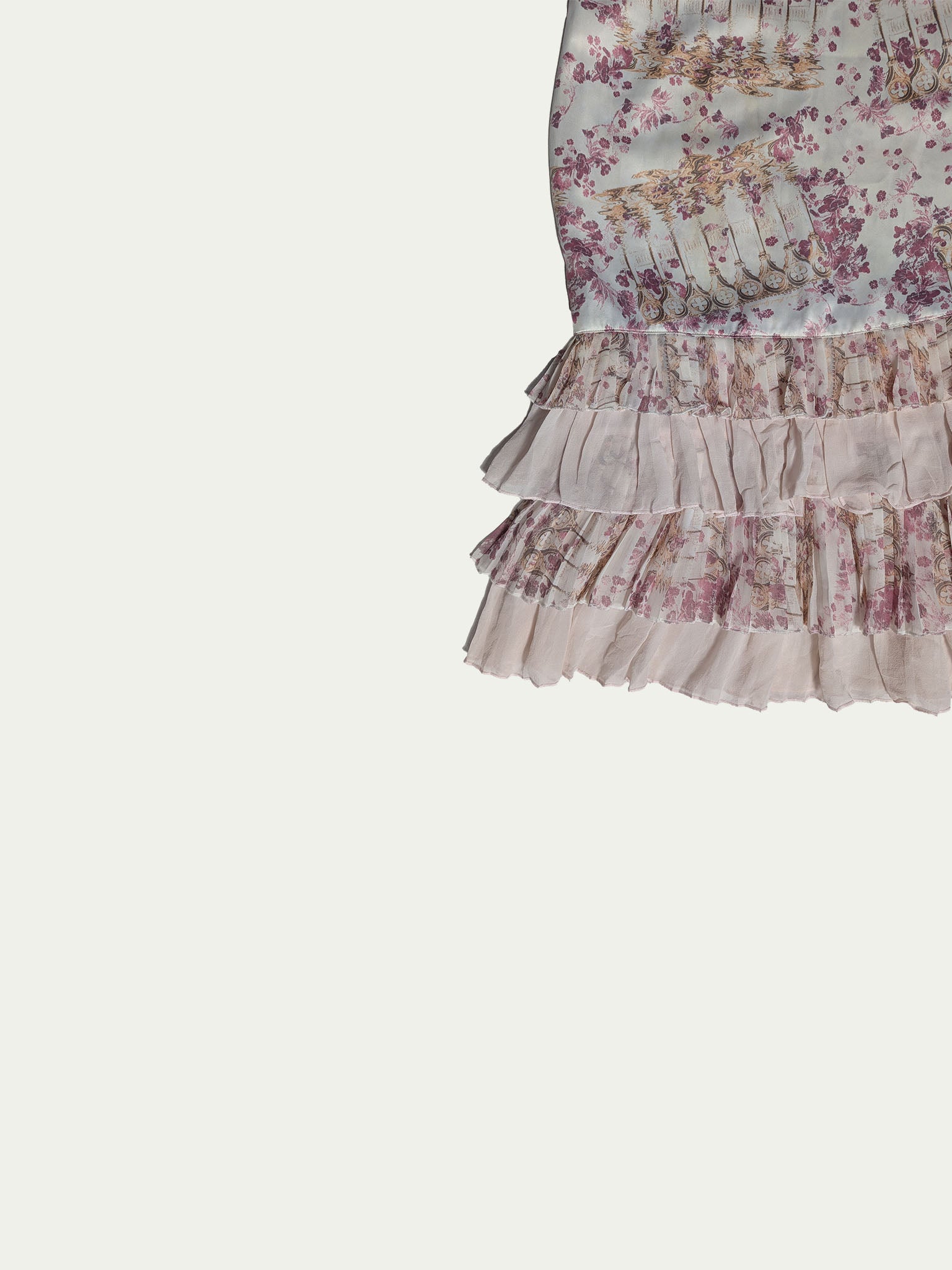 In pink & cream shades, with silk ruffles.