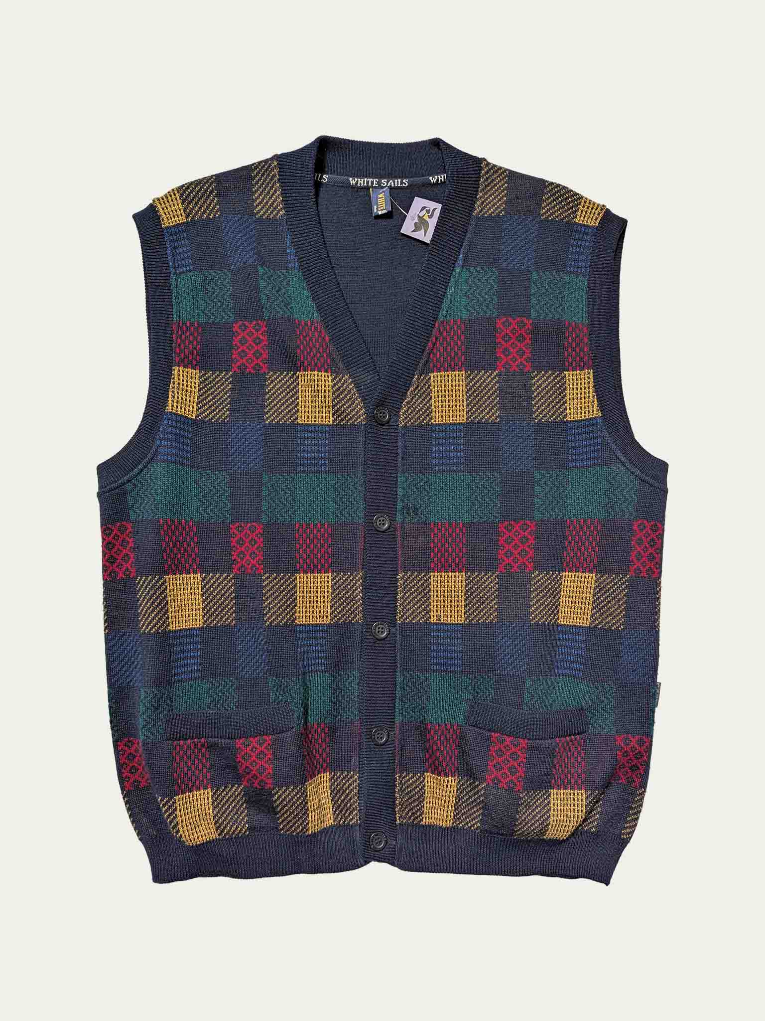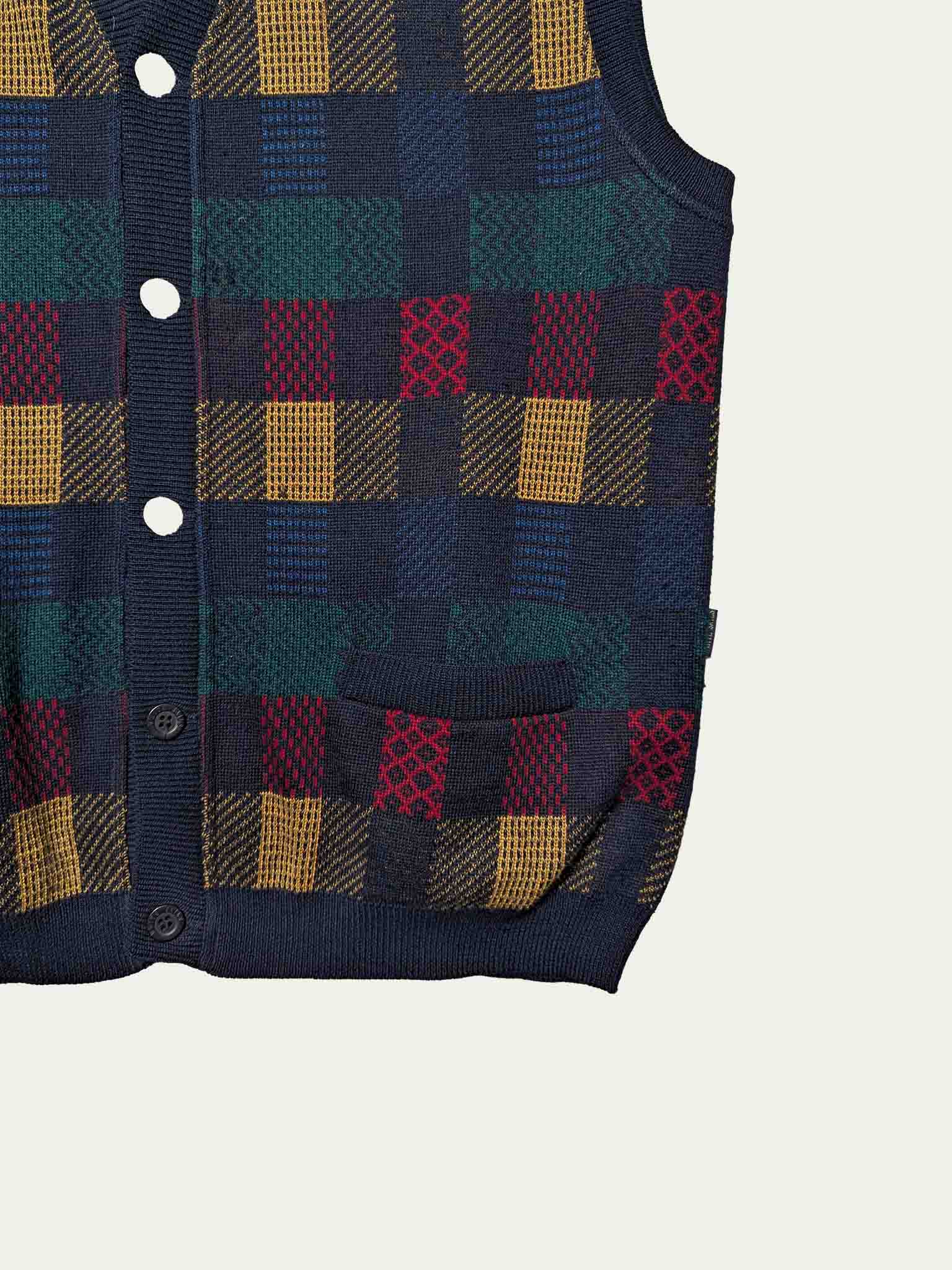 90's knitted vest, with a multicolored front and a plain back.
