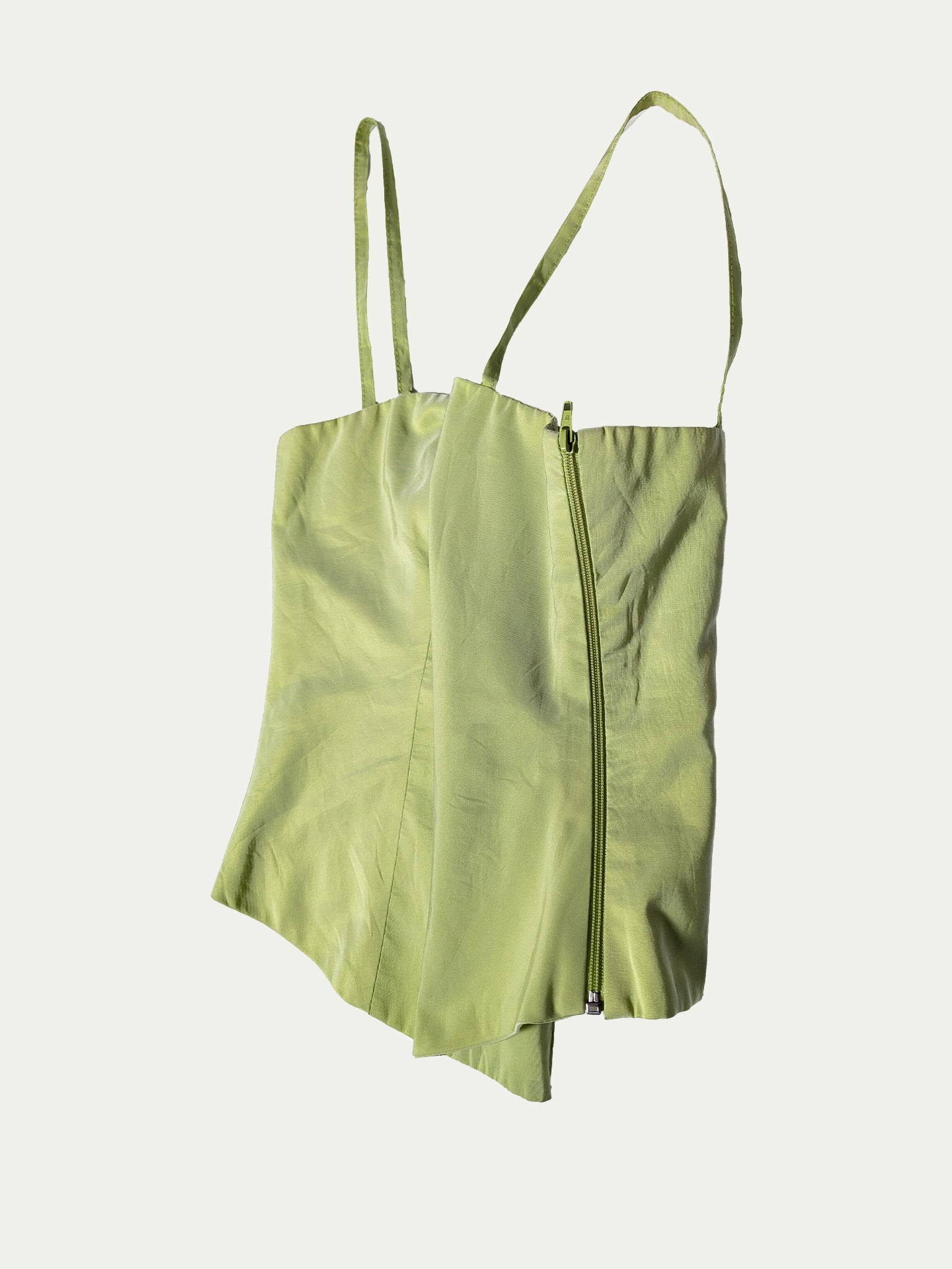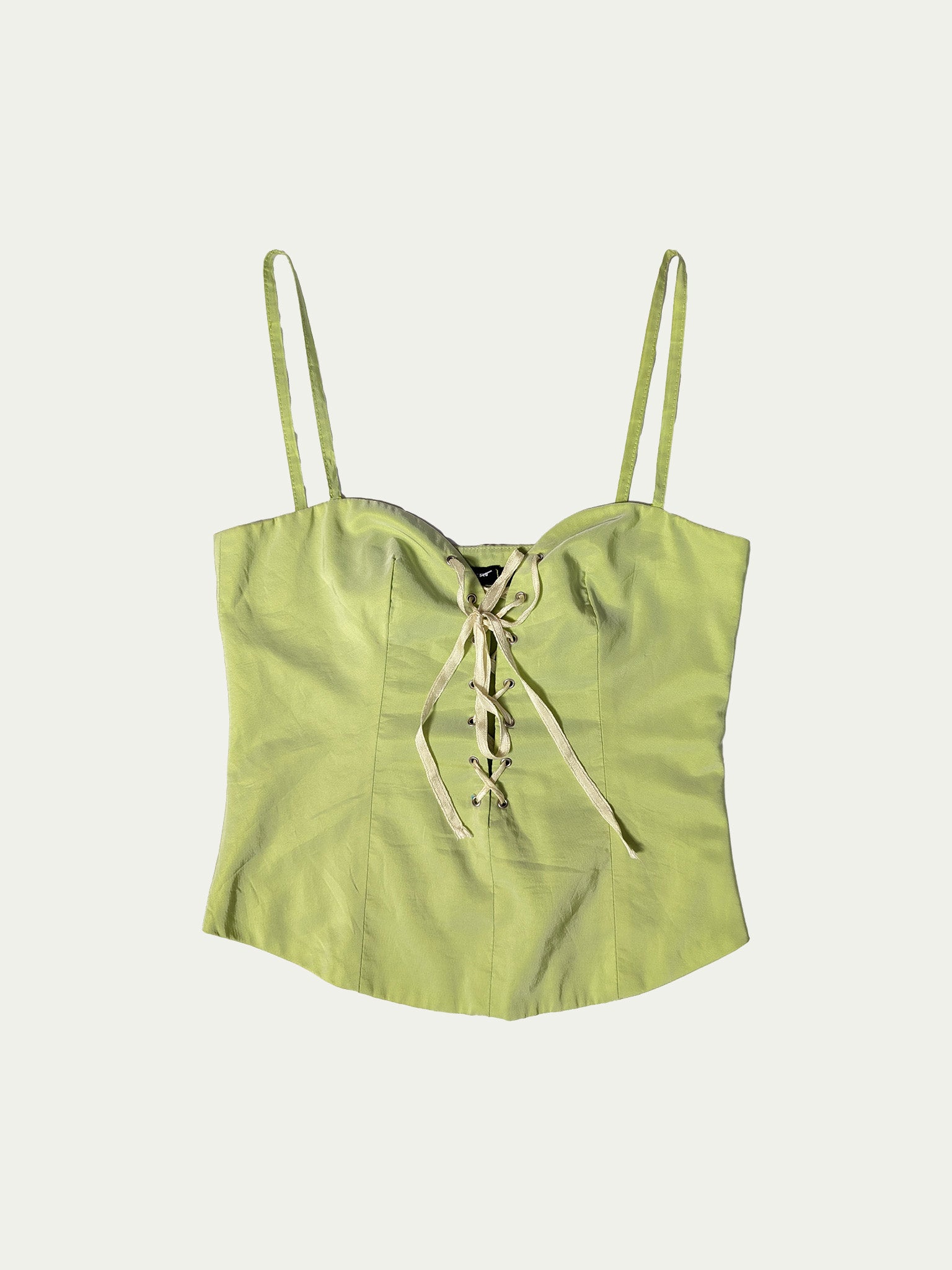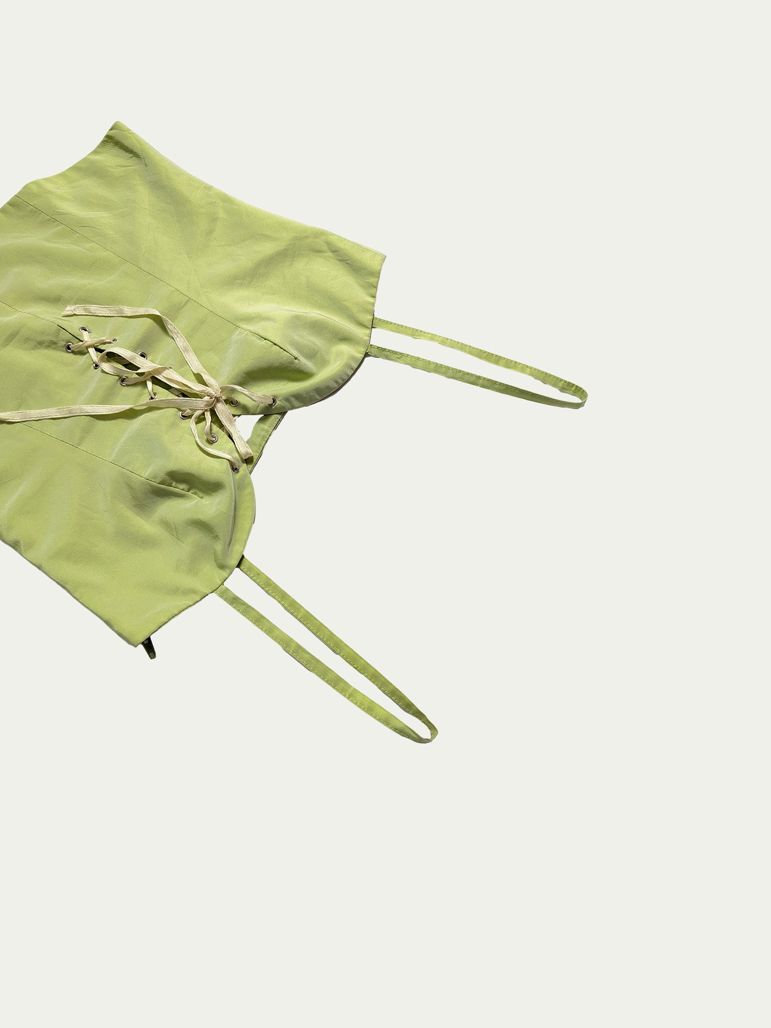 Y2K Lime green corset, with front chest lacing, and a side zipper.