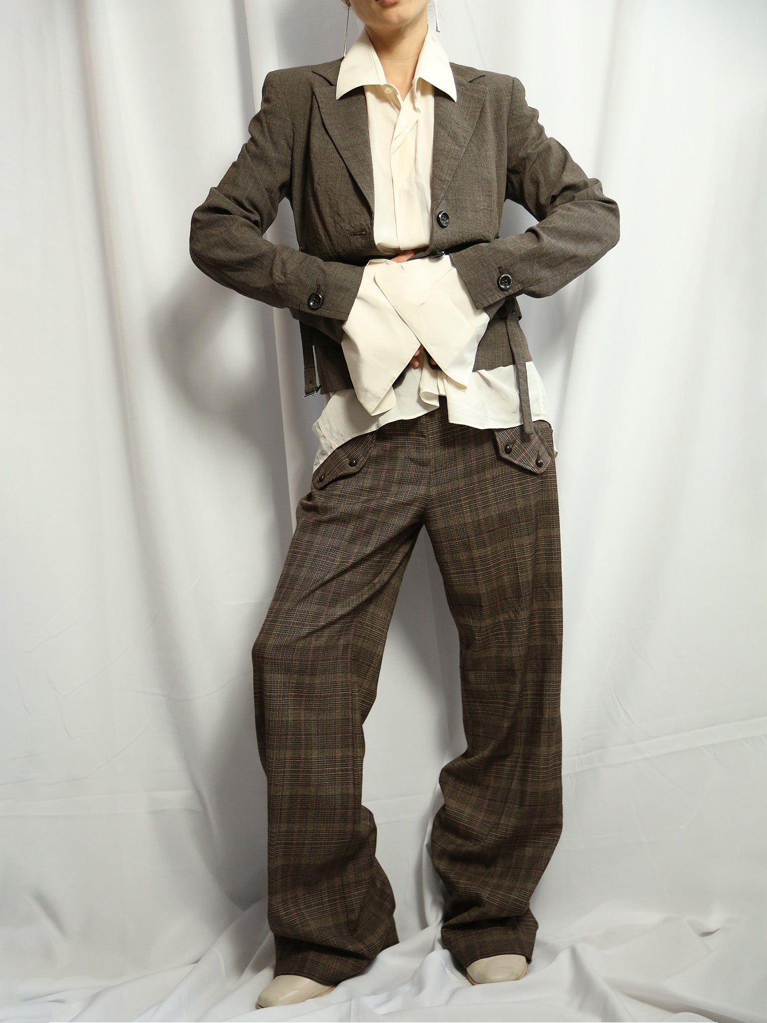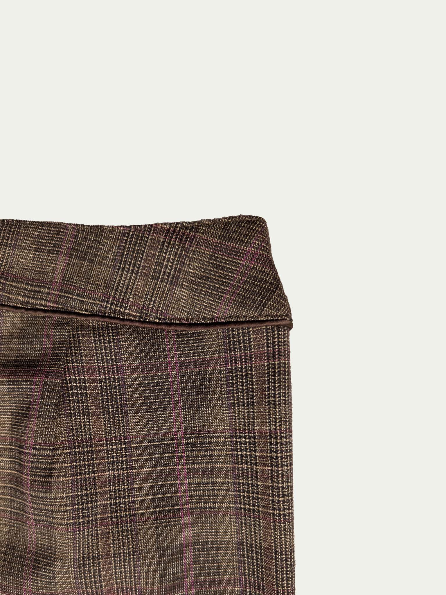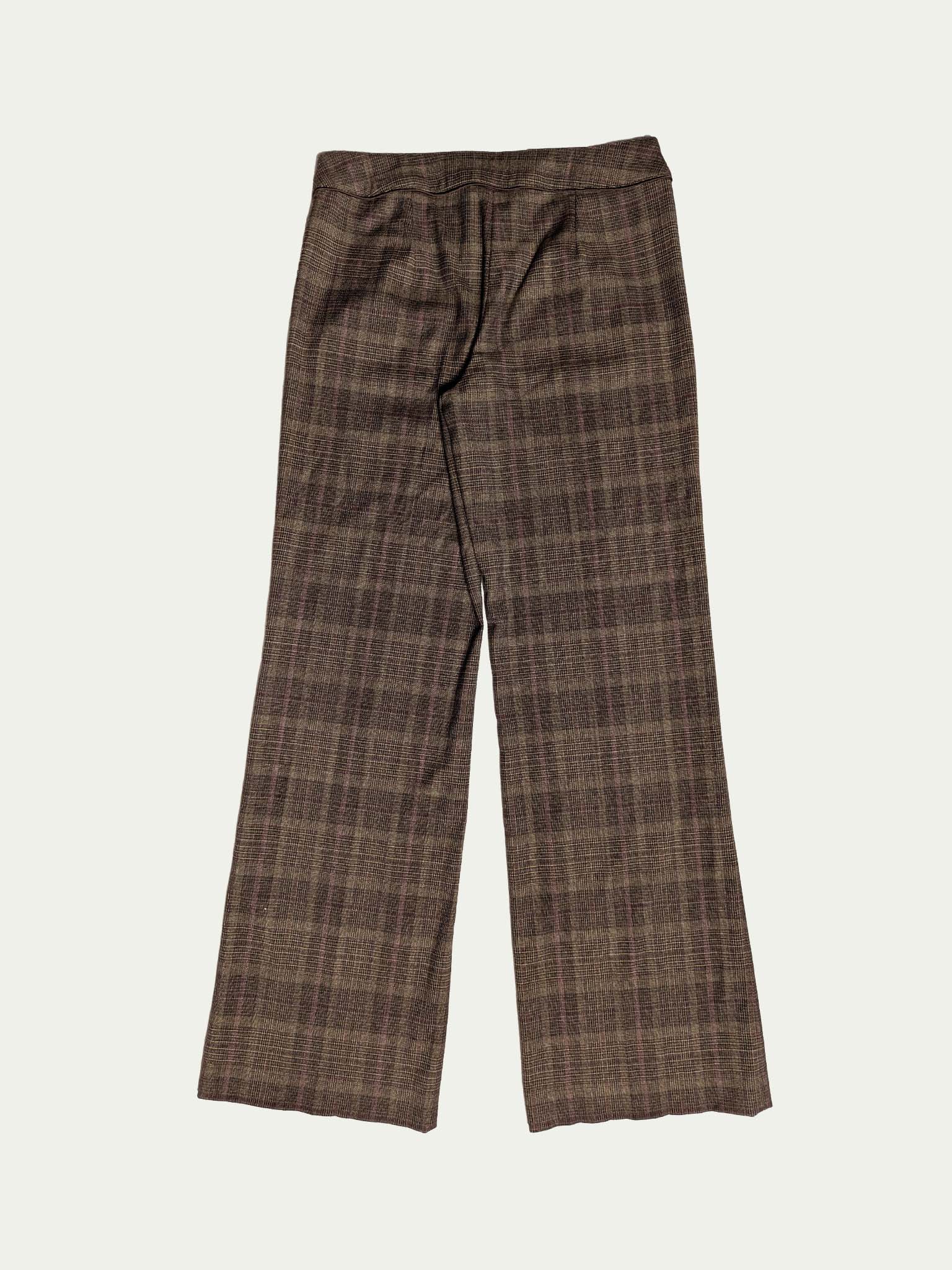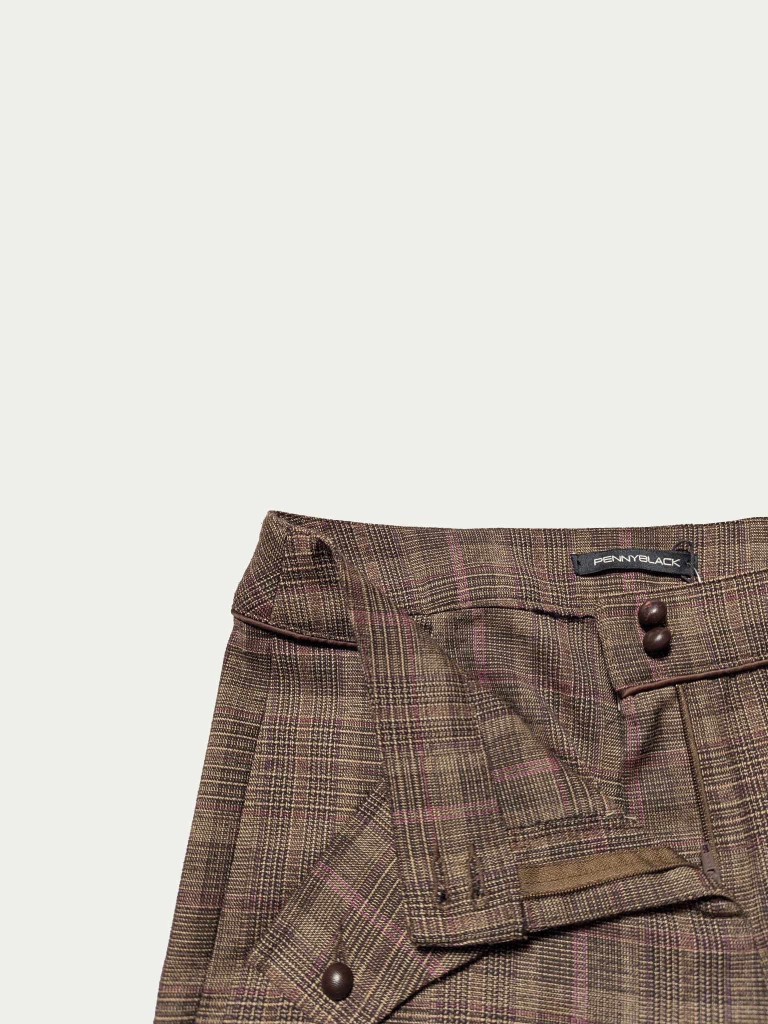 Penny Black Y2K plaid pants, in a wide straight-leg low/mid-waist cut, with round metal buttons details.