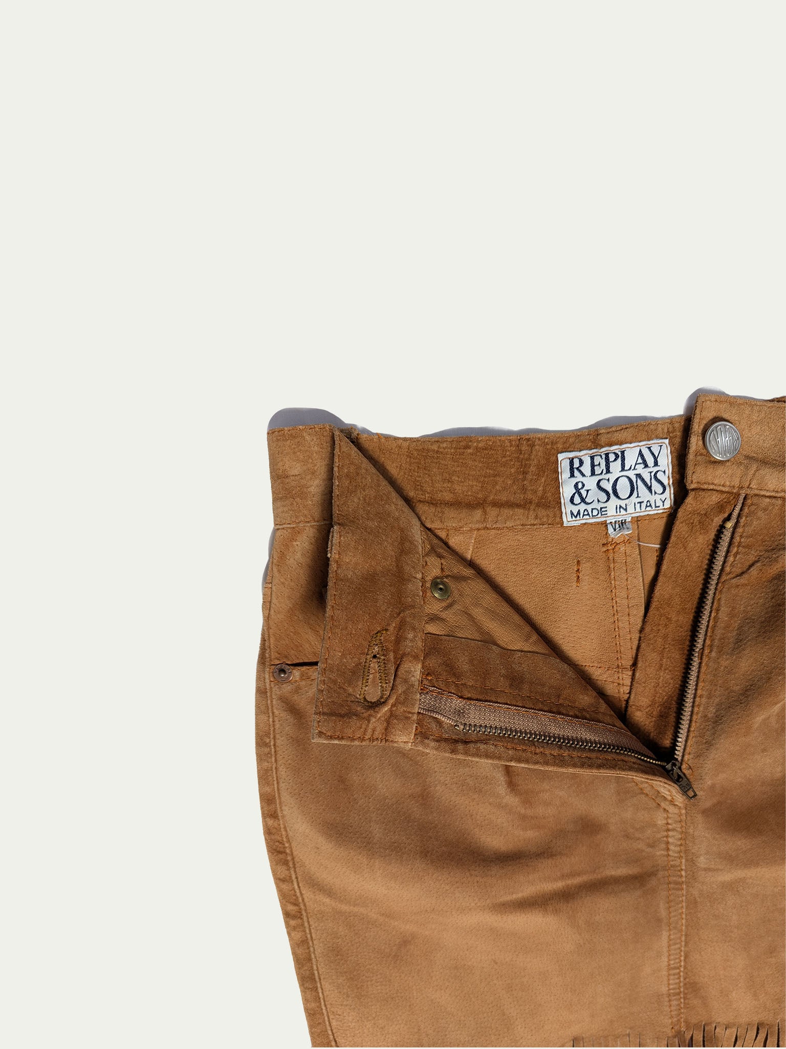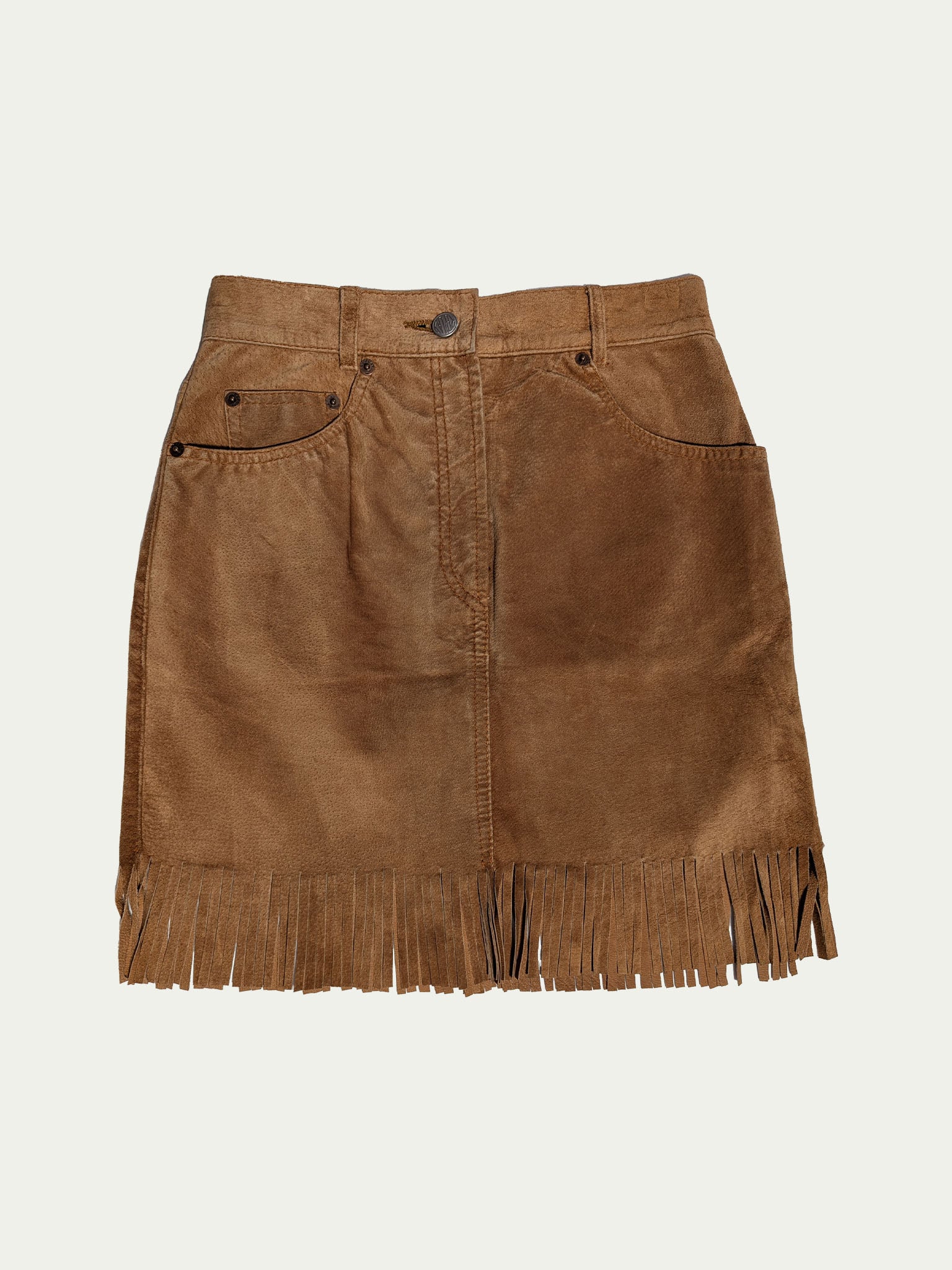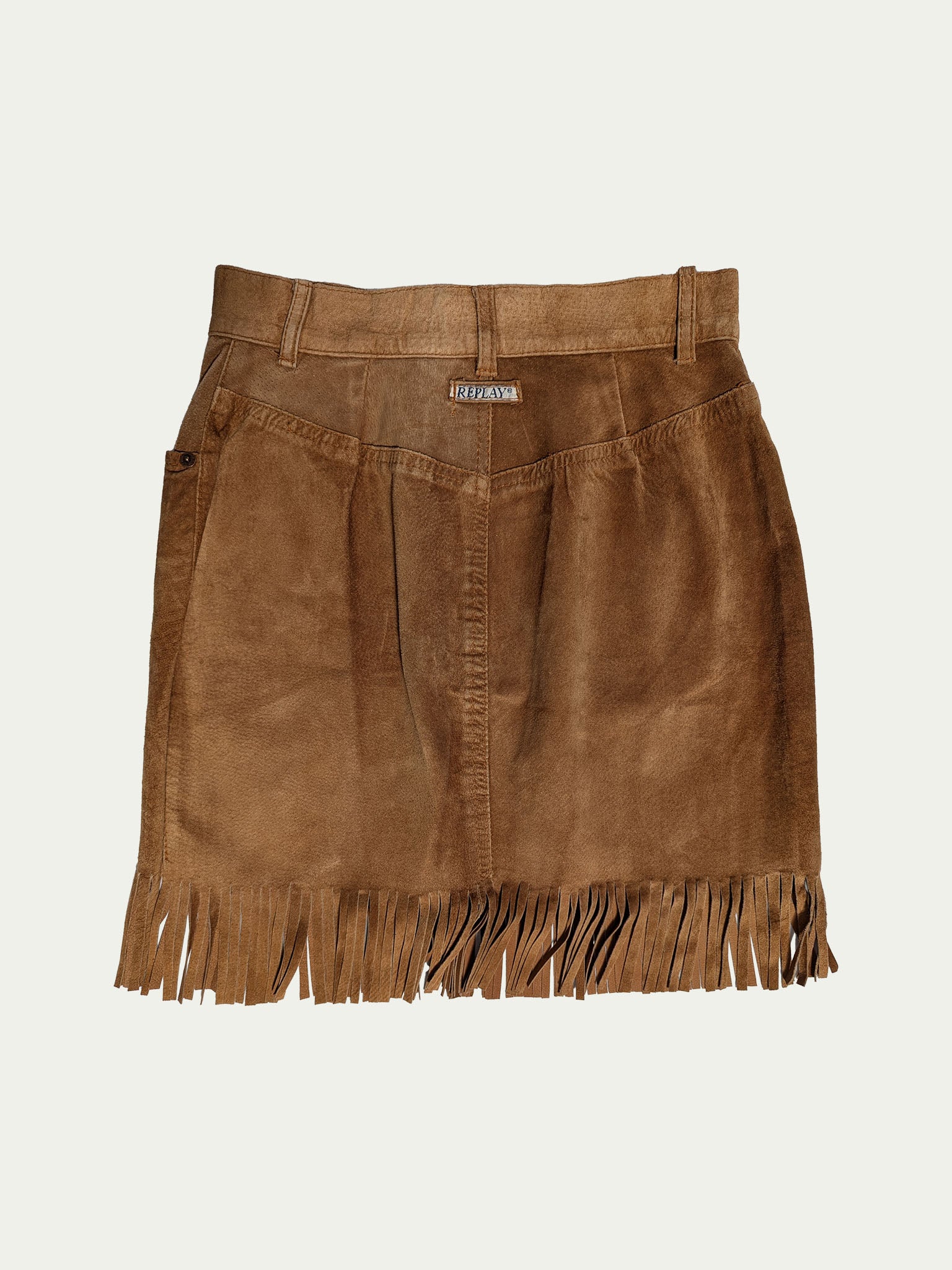 Replay 80's cowgirl mini skirt, high waisted, with belt straps, two front pockets, and a button & zipper closure
