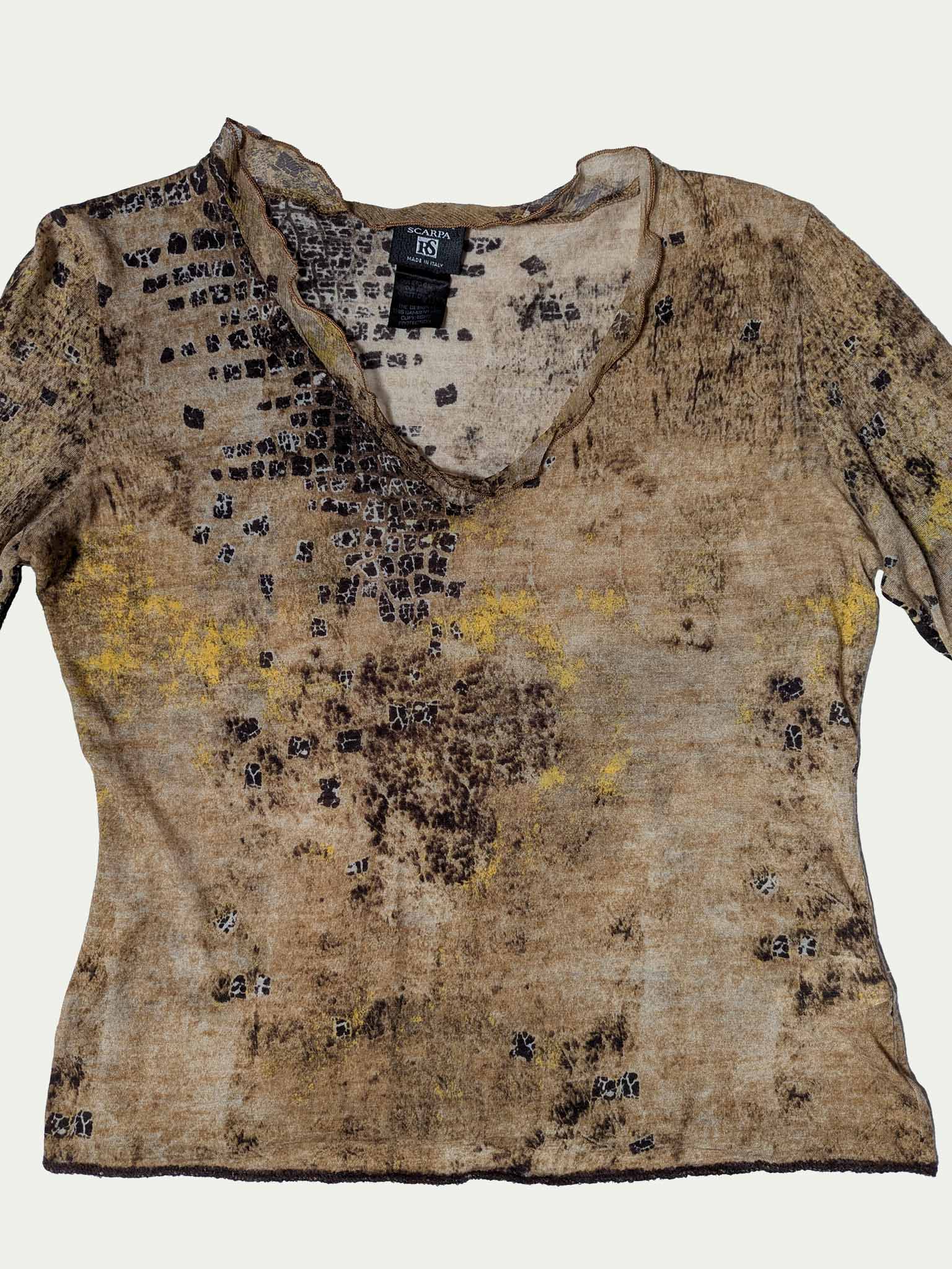 Roberta Scarpa y2k printed top, in brown shades with a yellow touch.