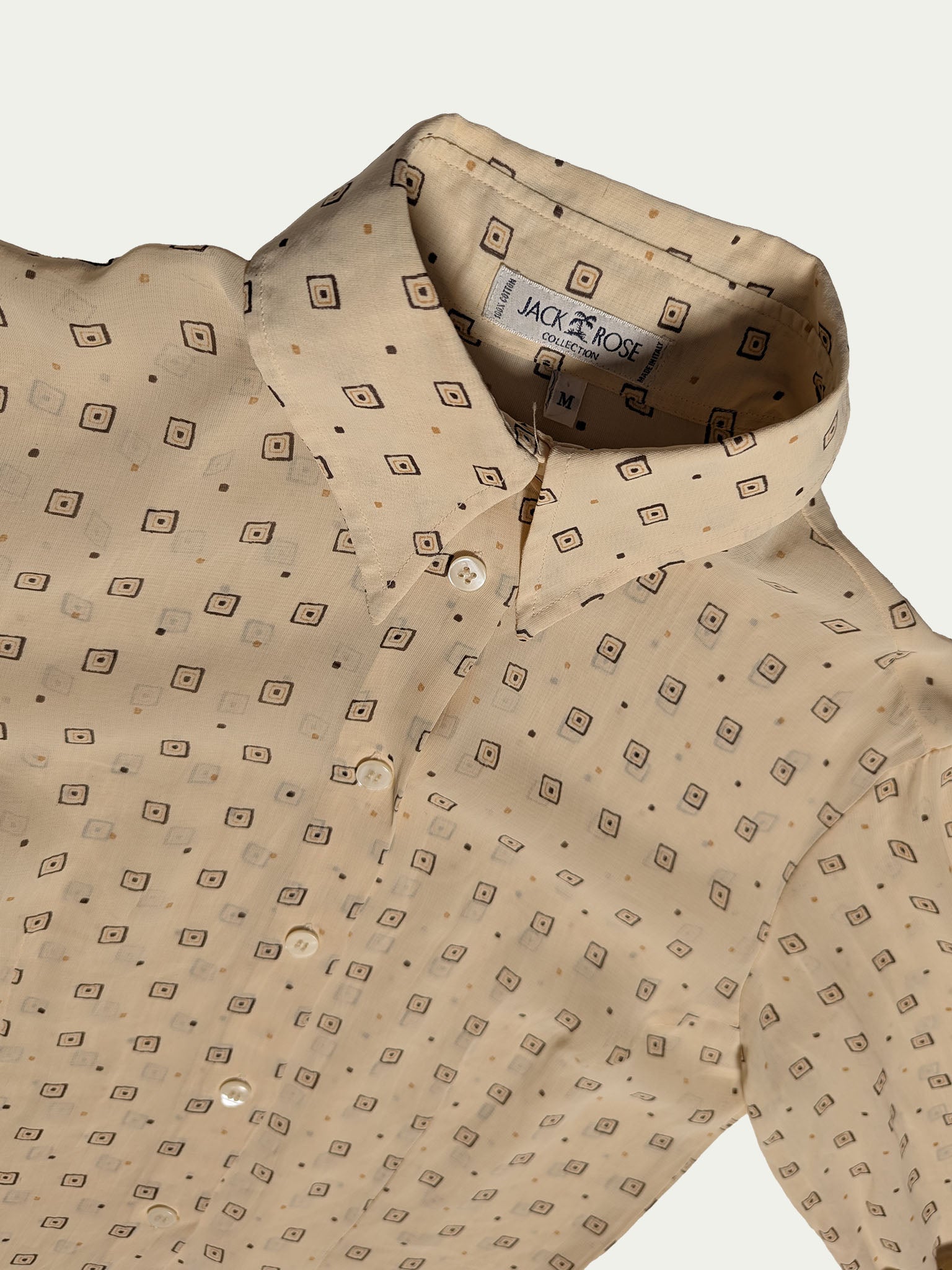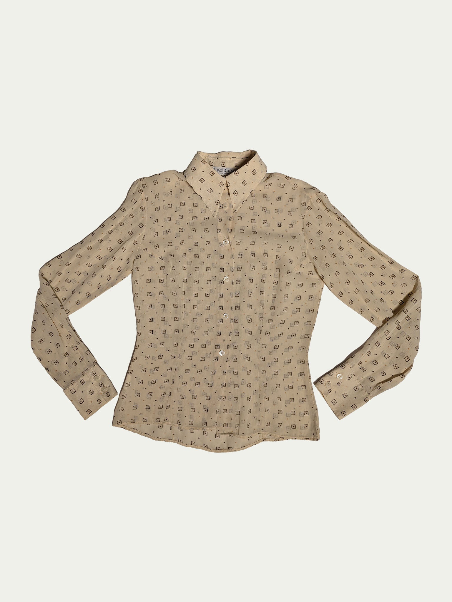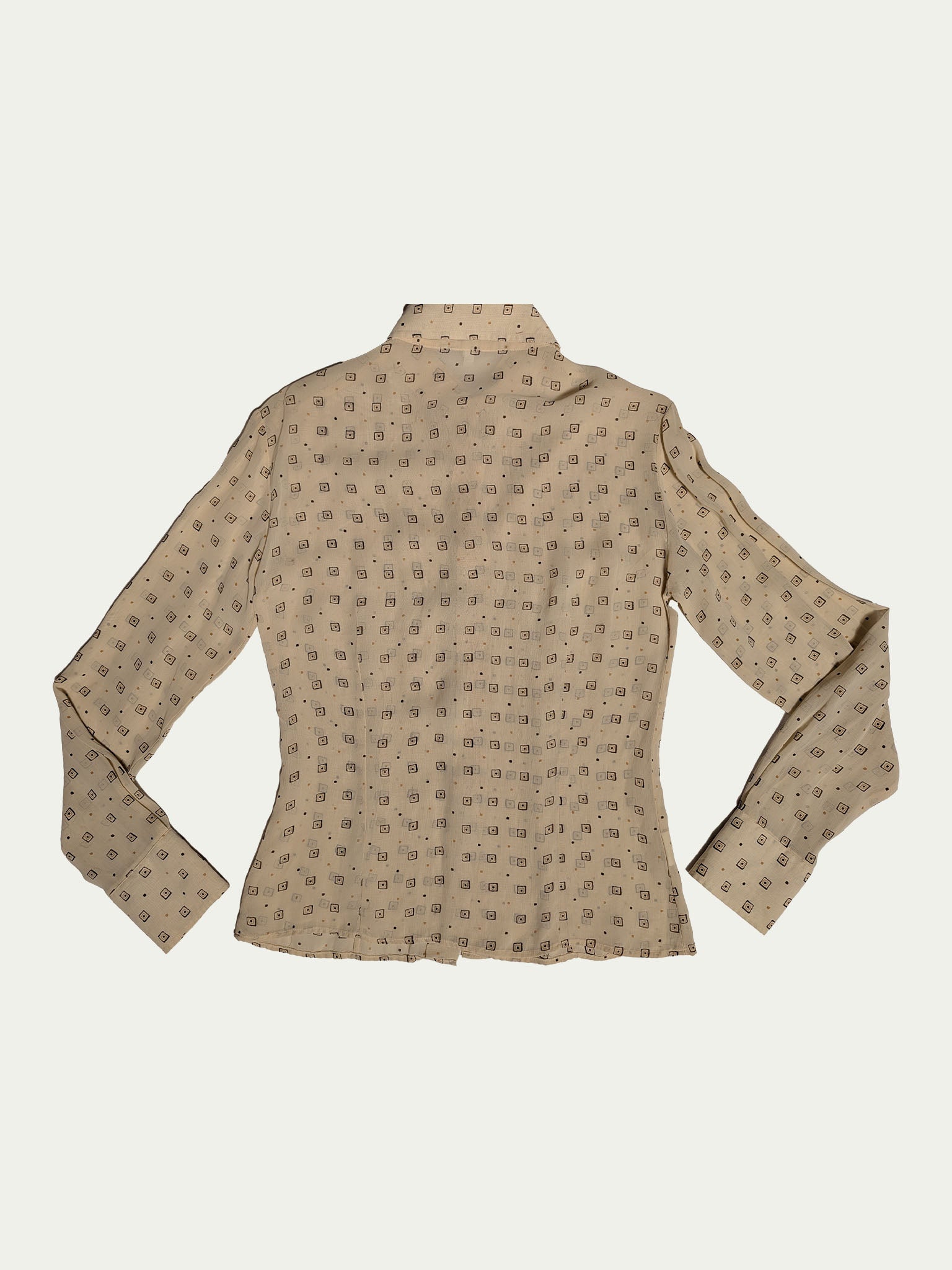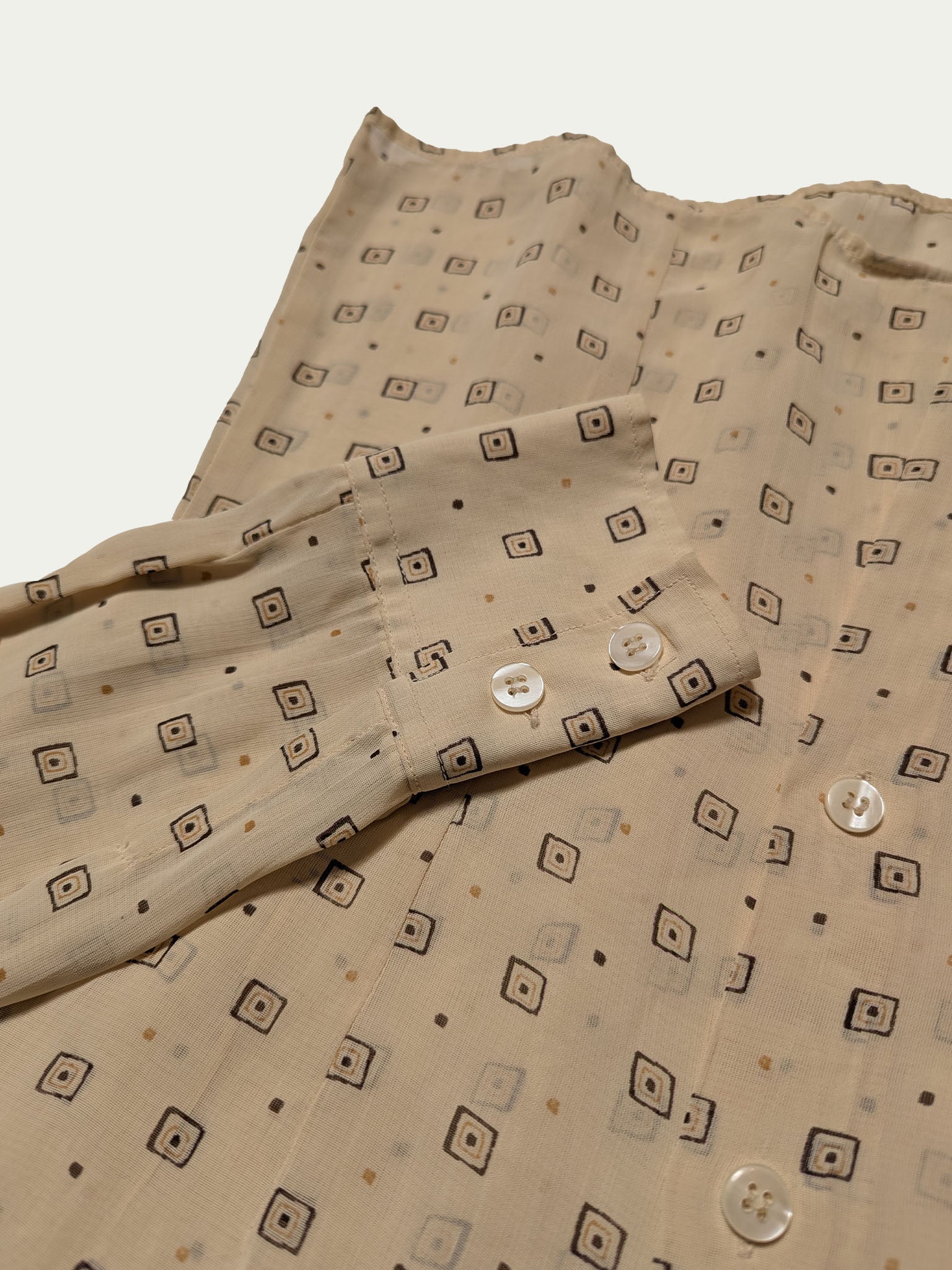 70's Chiffon blouse, with a typical squares print, a pointy collar, and a button-up closure.