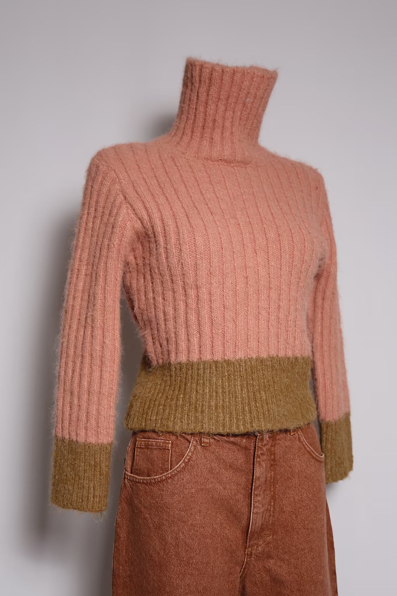Thick turtleneck sweater in warm soft pink with a bronzy touch, made from an extra-soft high-quality wool blend.