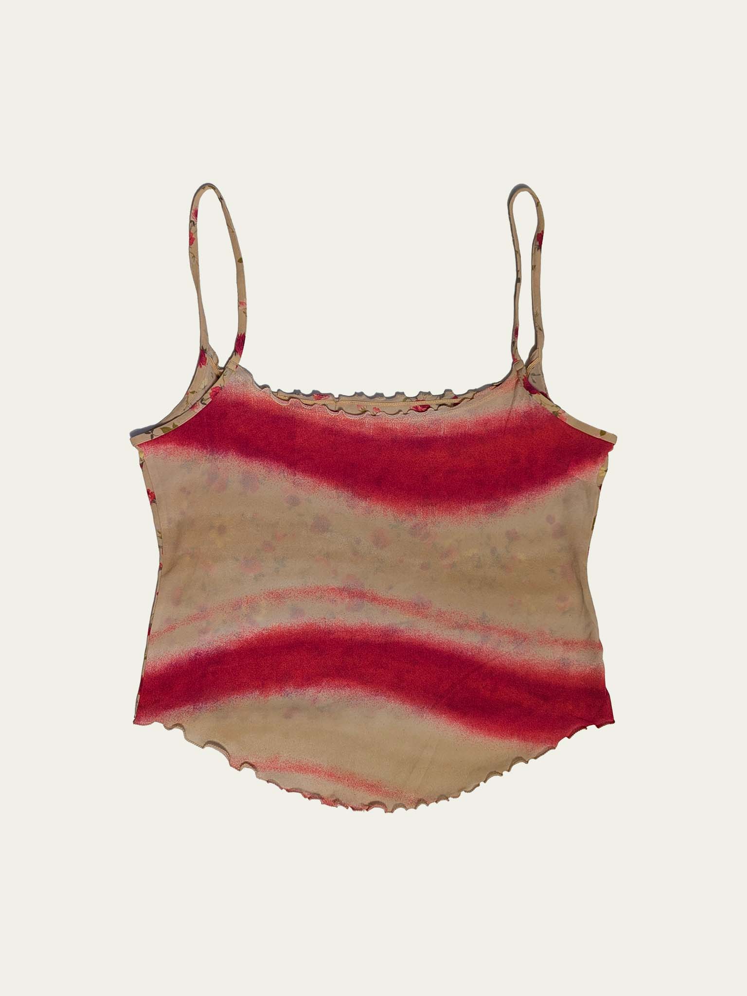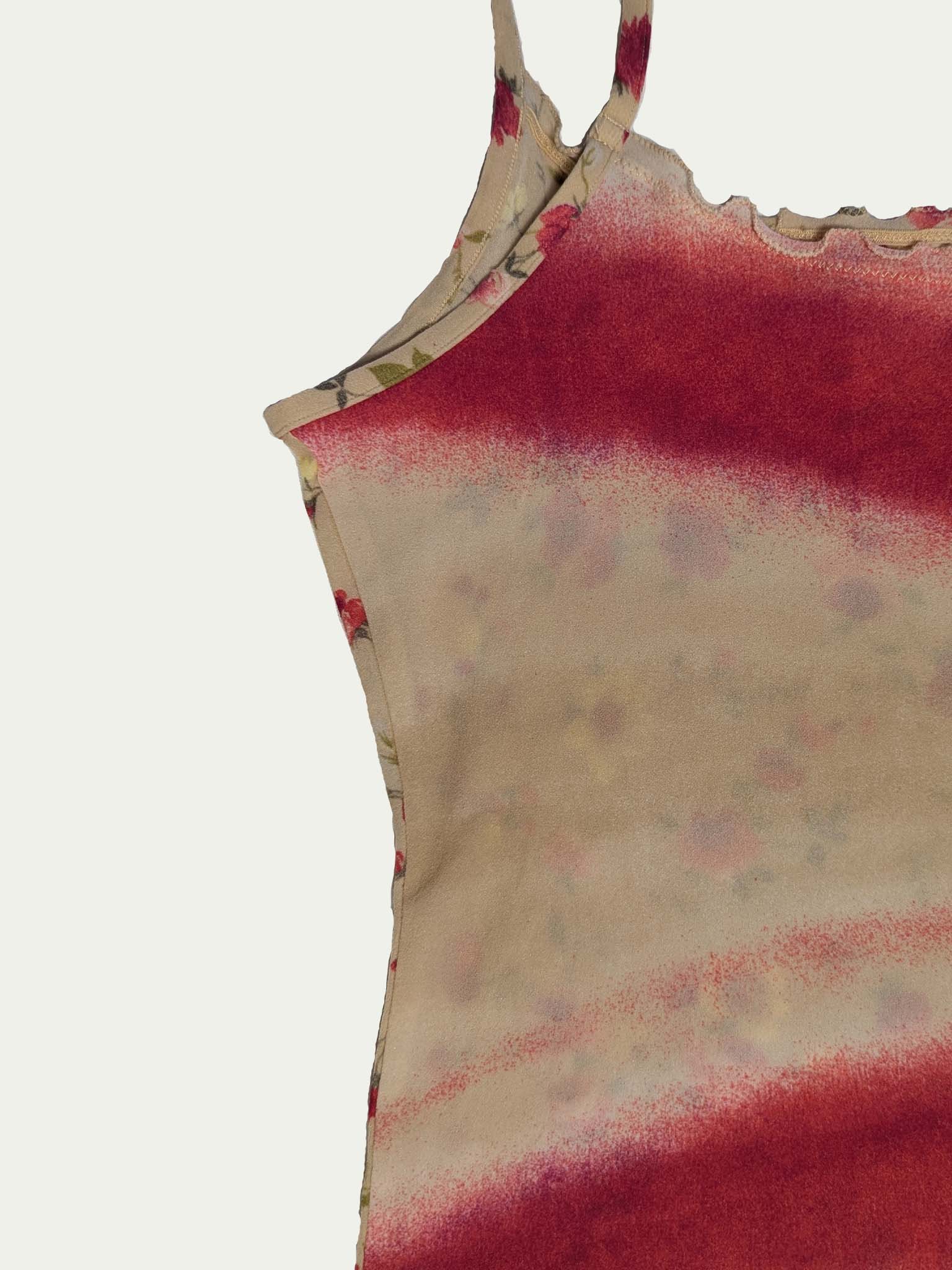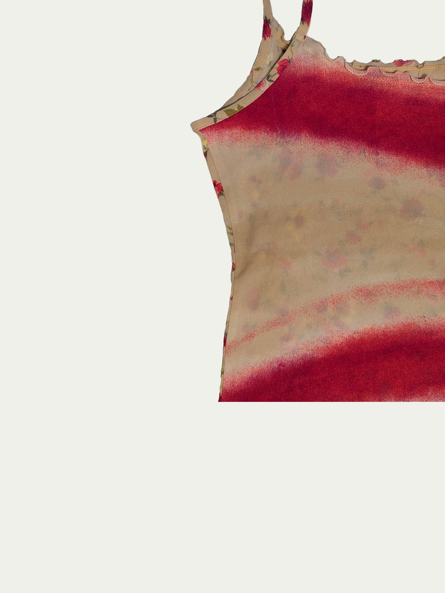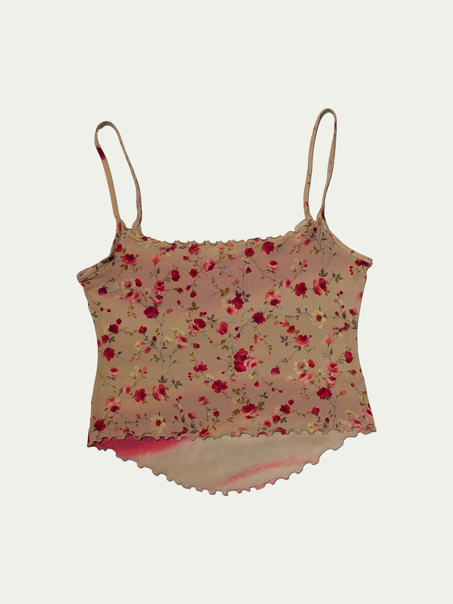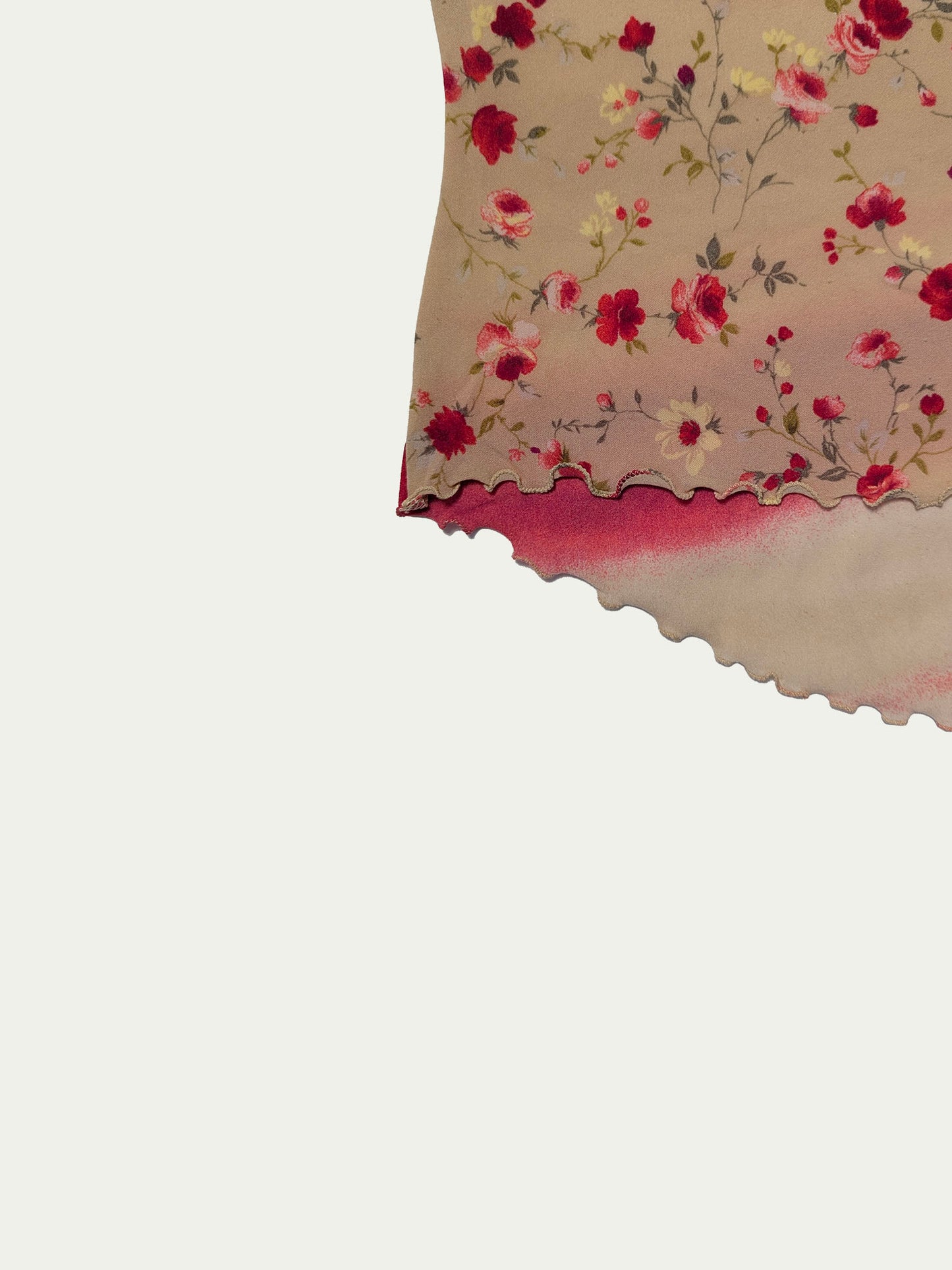 90's crop top, with a cute flowers pattern at the front, and an abstract wavey print at the asymmetrical back.