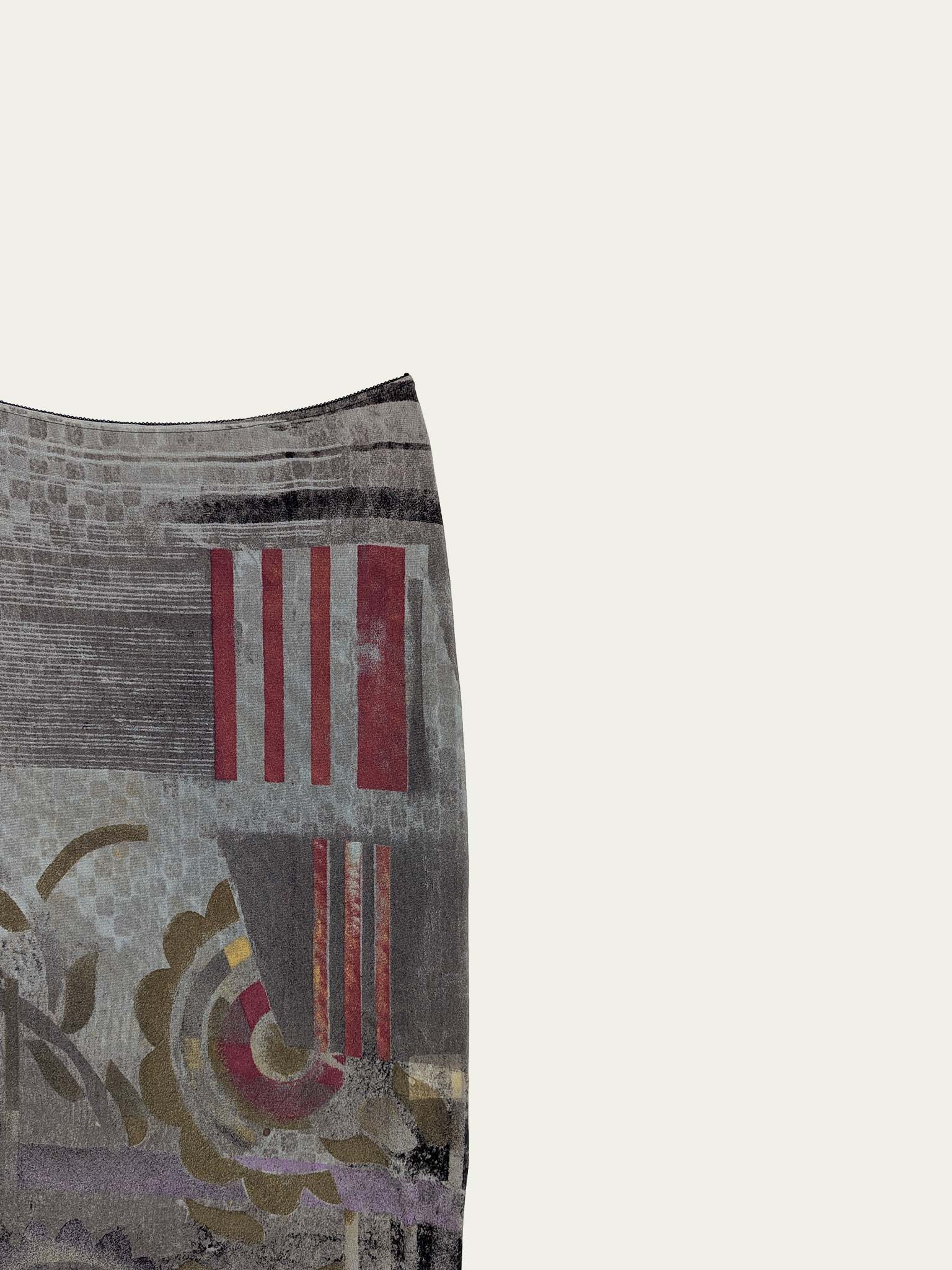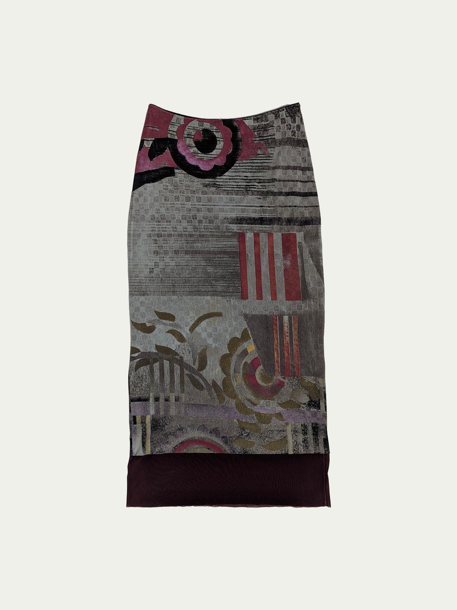 90's double-layered mesh skirt, maxi lenghed, with a rare unique gaultier's style print.