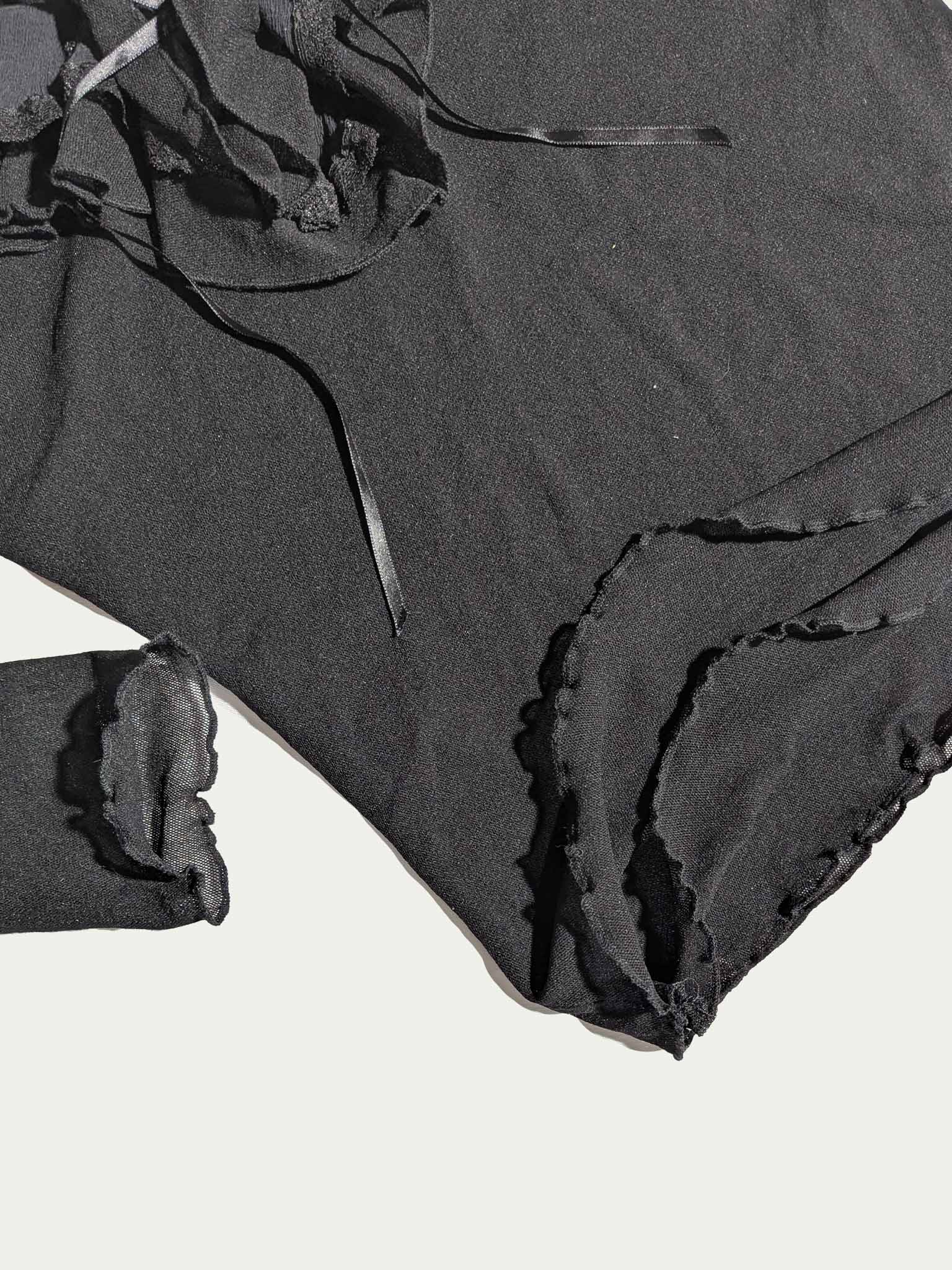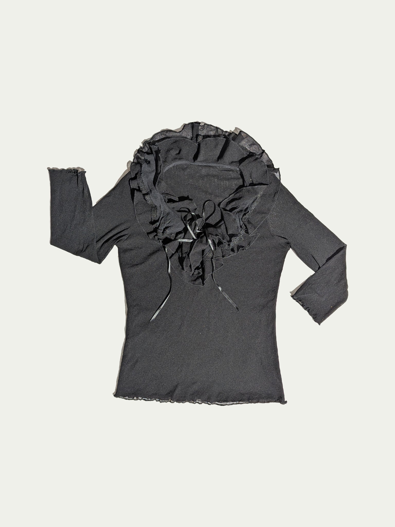 Features a three-layer ruffled cleavage, including a silk layer, and two gentle laces.