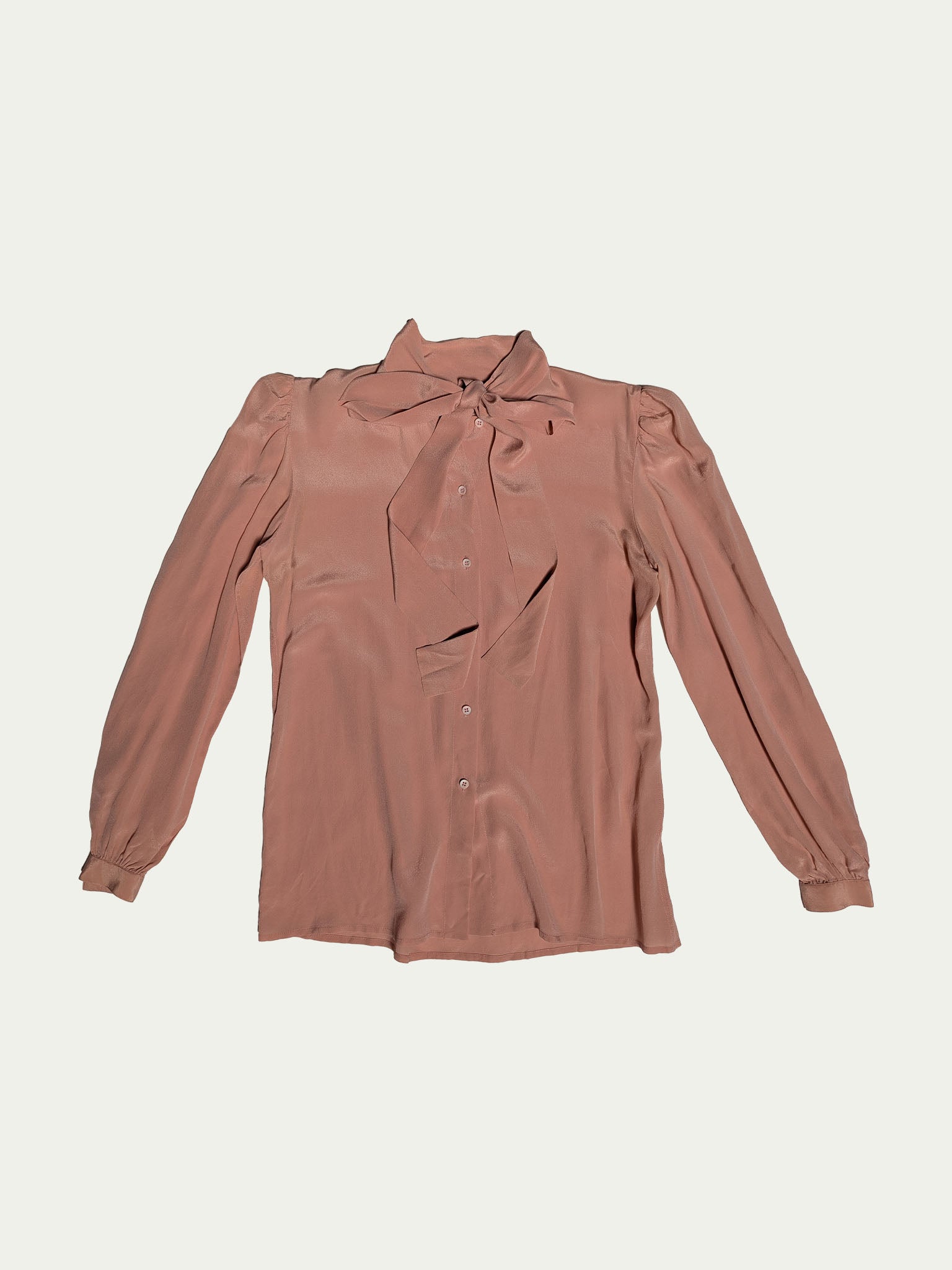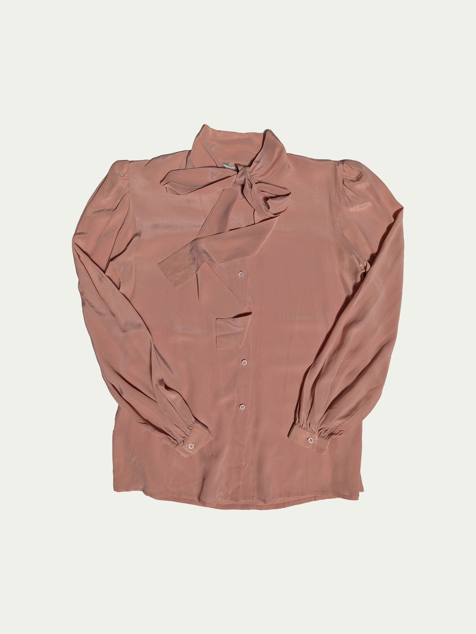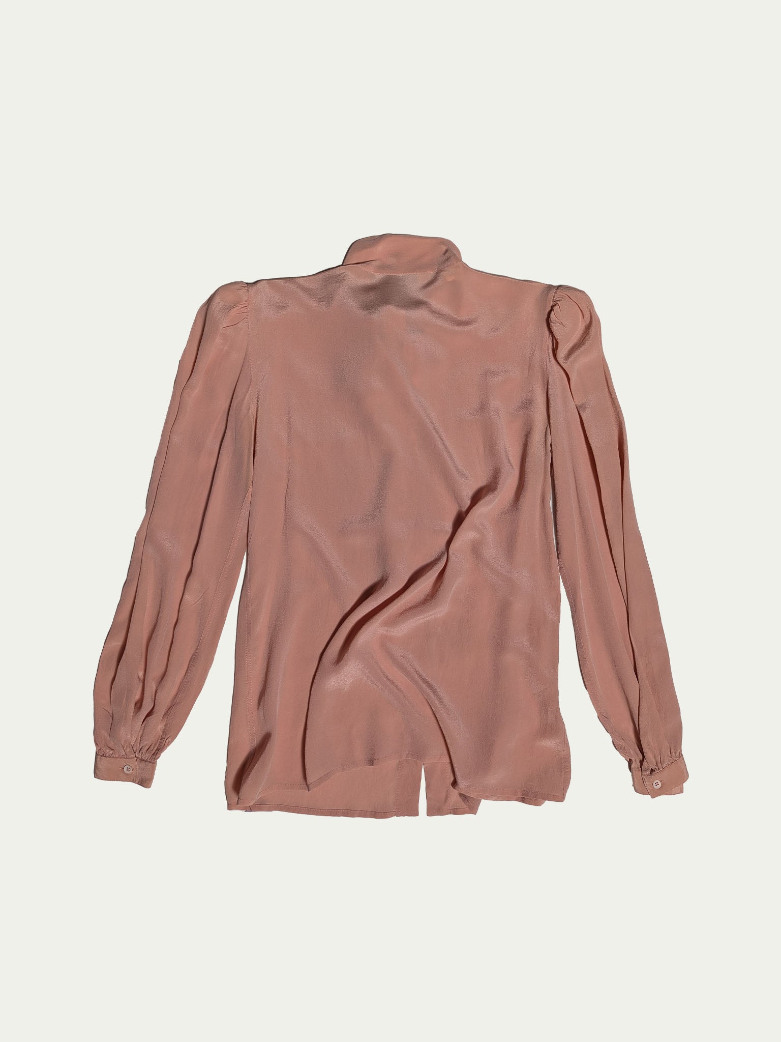 80's Silk blouse, in a smokey pink shade, shoulder gentle pleats, and wide romantic sleeves with narrow cuffs.